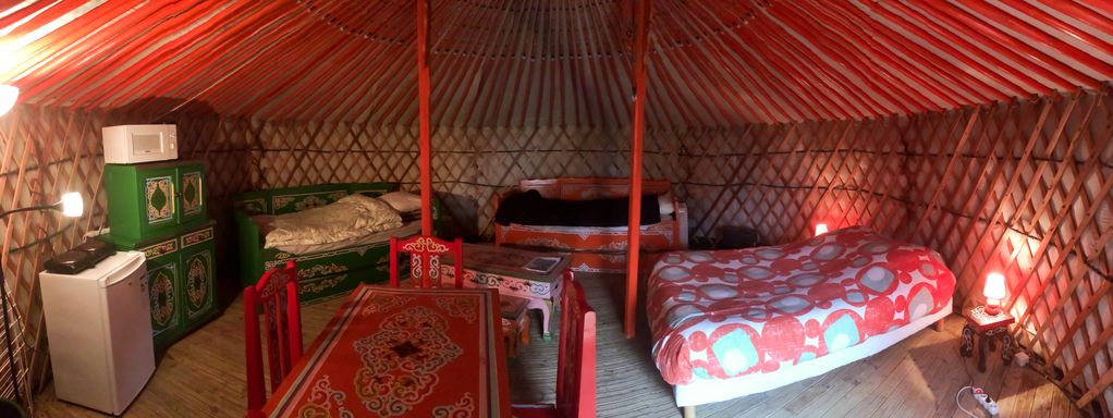No fundo é uma tenda onde podem dormir seis pessoas. E há várias tendas disponíveis para alugar.