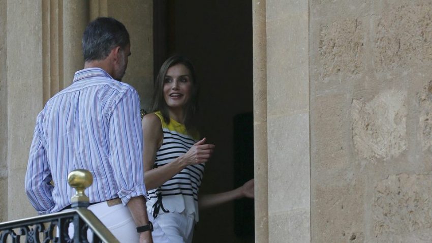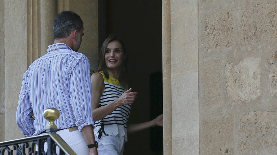 Os quatro elementos da realeza estavam vestidos em tons azuis e brancos, ainda que a rainha Letizia tivesse dado um apontamento de cor com o amarelo no seu top ‘marinheiro’. Sorridentes e muito cúmplices, trocaram umas breves palavras com os cerca de 70 jornalistas ali presentes e posaram para as fotografias em três cenários distintos.
