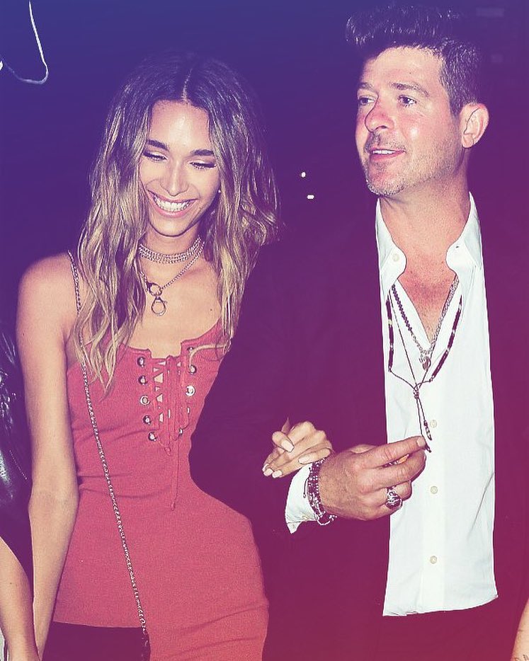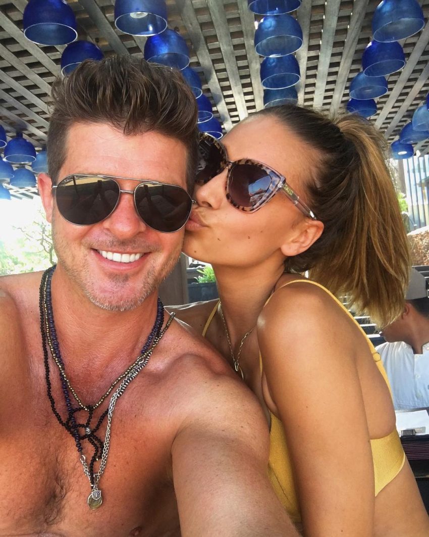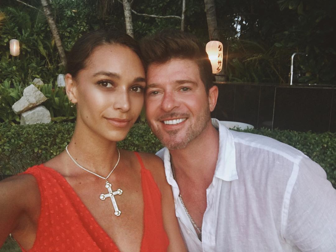 O intérprete de ‘Blurred Lines’ e a modelo, de 22 anos, estão juntos há dois anos mas já se preparam para viver a experiência da paternidade juntos.