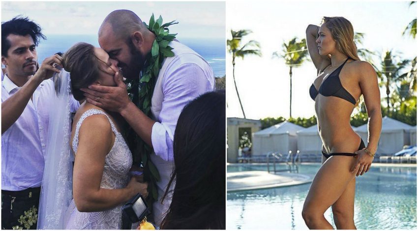 Terá sido mera coincidência? Isso ainda não se sabe. O que é certo é que a atleta escolheu o dia 26 de agosto, data do mediático combate de boxe entre Floyd Mayweather e Conor McGregor, em Las Vegas, para contrair matrimónio com o também lutador, Travis Browne. Os dois estavam noivos desde abril.