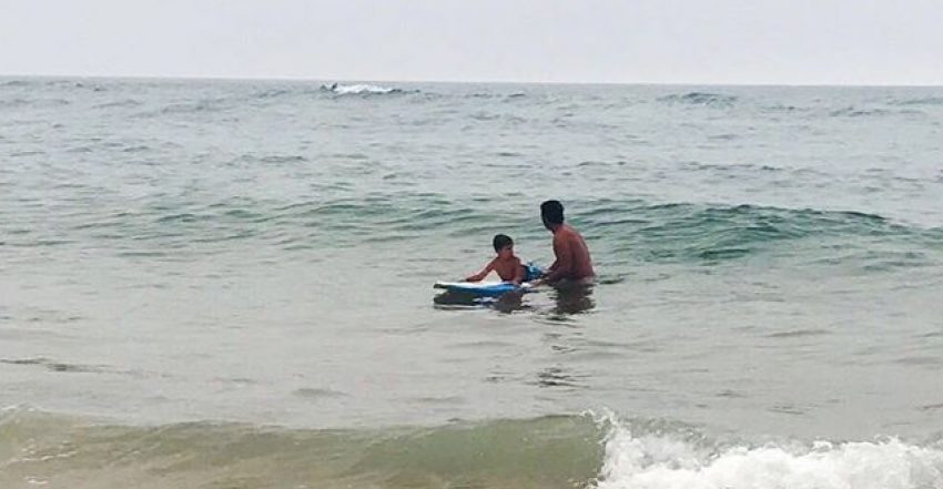 Tomás sempre foi muito espevitado e, nestas férias, conquistou o desejo de ter uma prancha de surf e até a experimentou com a ajuda do pai, João Cardoso.