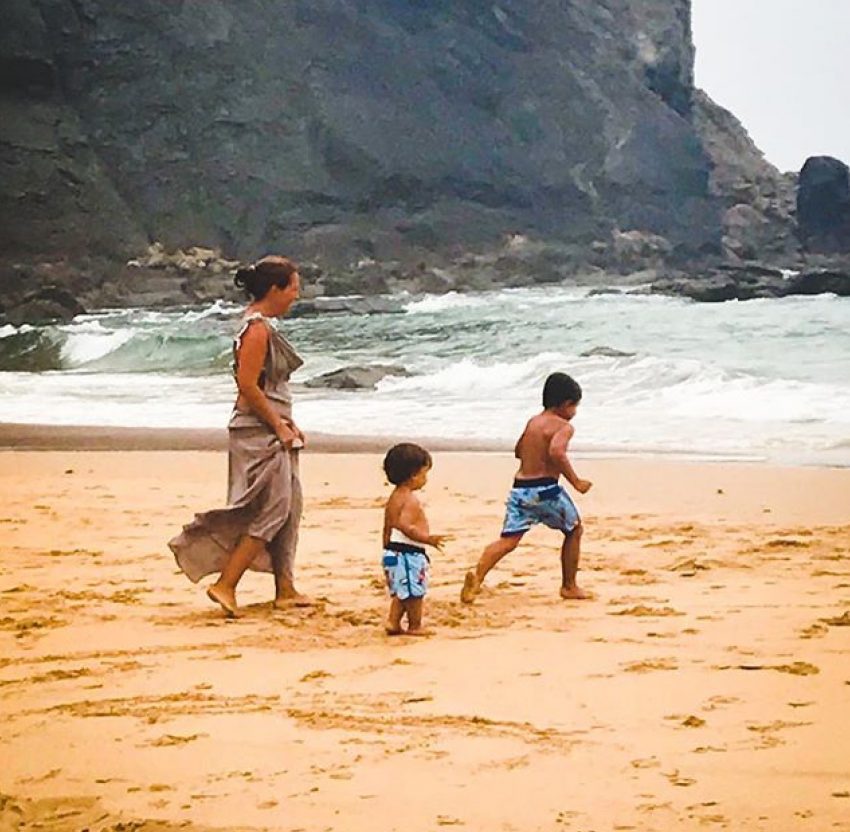Muito descontraída, não mede esforços nas atenções para com Pedro, de dois anos, e Tomás, de quatro anos e meio, que não param quietos um segundo. “Mais um dia feliz”, descreve na imagem que publicou e na qual surge a caminhar atrás dos meninos rumo ao mar.