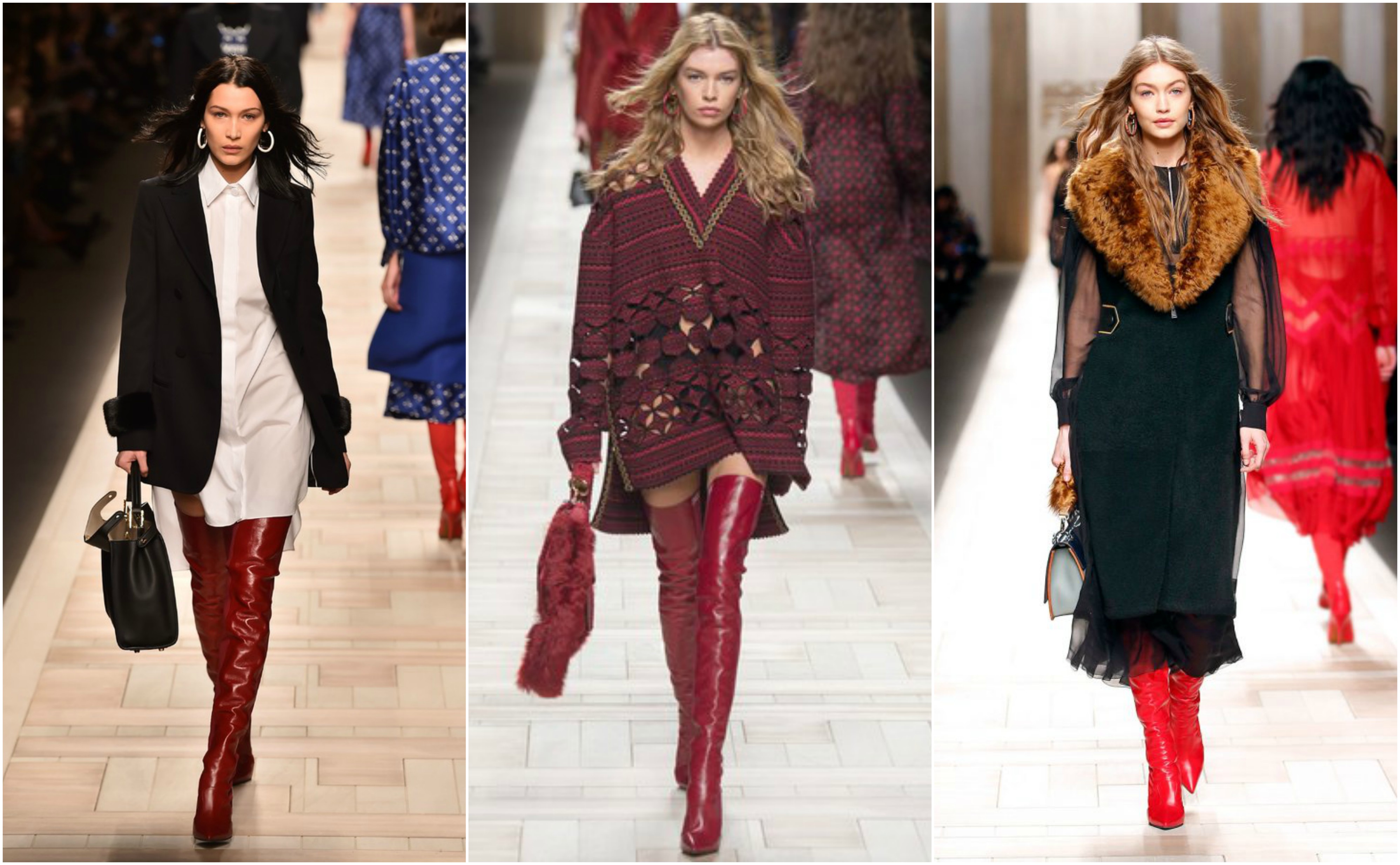 Há três critérios que têm de cumprir: as botas como acessório, a cor vermelha vibrante e que sejam bastante compridas. Fendi foi uma das principais empresas de alta costura a trazê-las para a passerelle.
