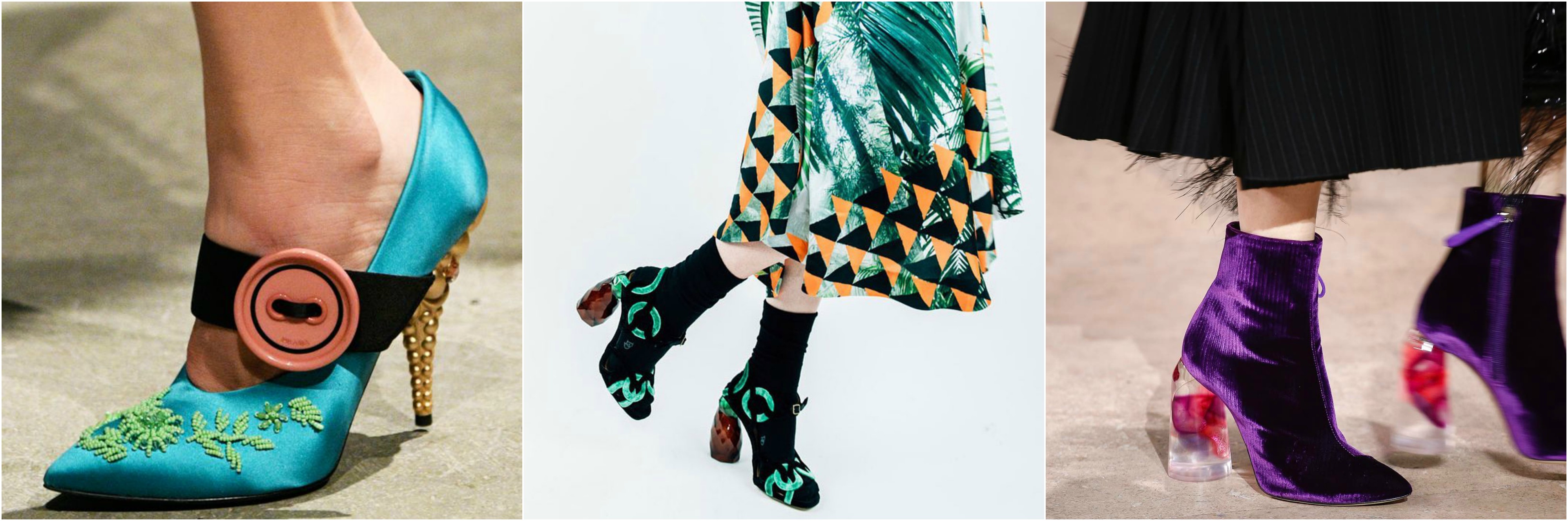 Os tacões querem-se diferentes, seja nas sandálias, botins ou stilettos. E isso pode vir em cores vibrantes, decoradas com pedras, formas inesperadas ou outro fator surpresa.