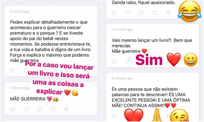 Foi nessas conversas que Cristiana Dionísio anunciou a novidade. “Por acaso vou lançar um livro e isso será uma das coisas a explicar”, devolveu a um seguidor que a tinha questionado sobre os motivos para o nascimento prematuro do seu filho.