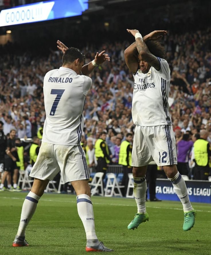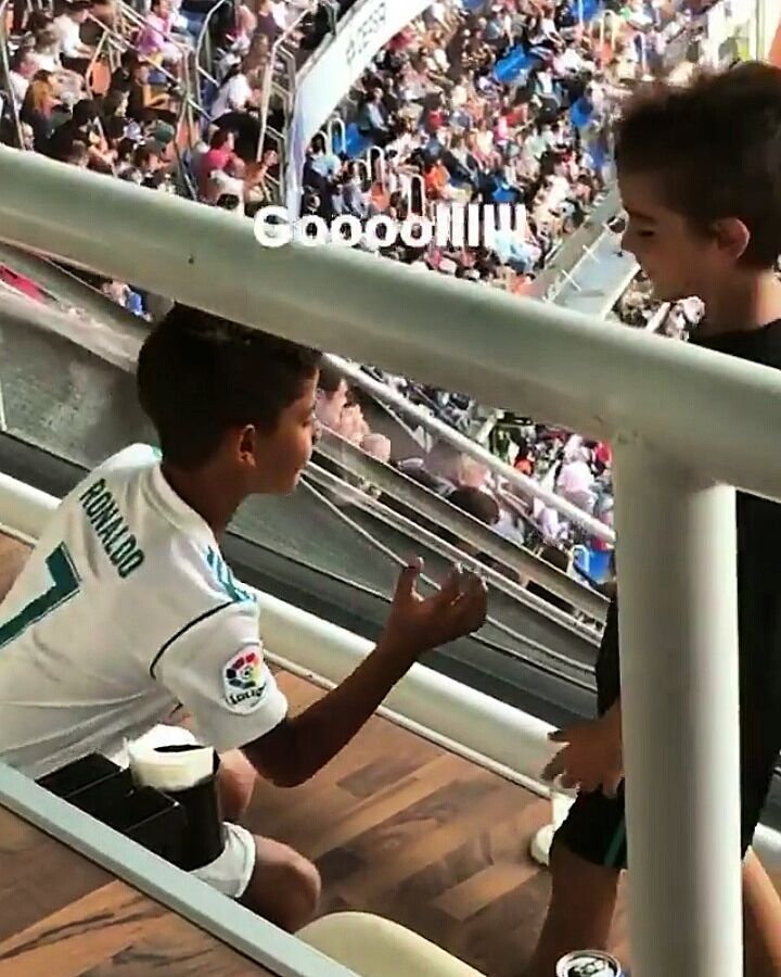 O jogo terminou 1-1 e após o golo do Real o filho e sobrinho do craque decidiram imitar a celebração entre o camisola 7 e Marcelo.