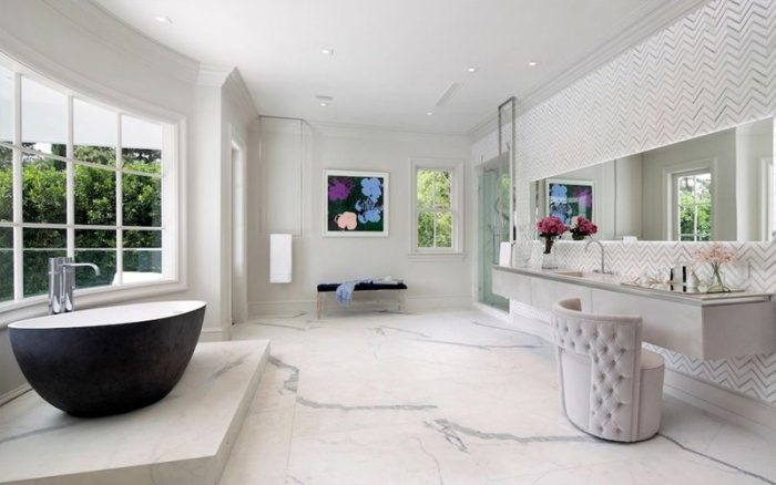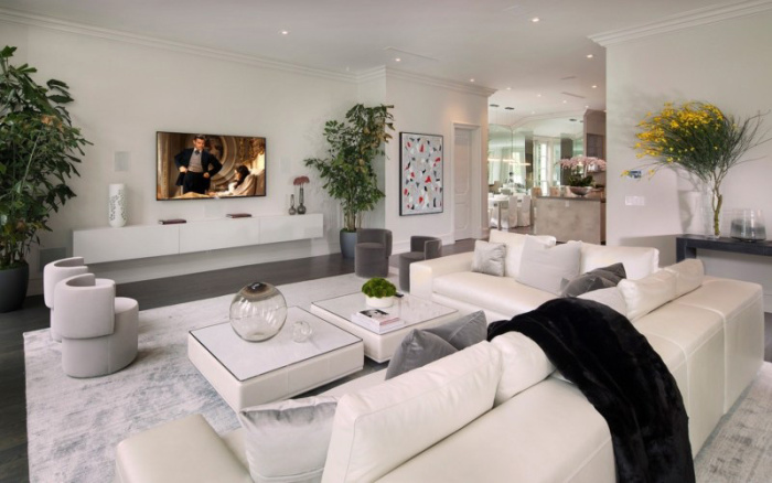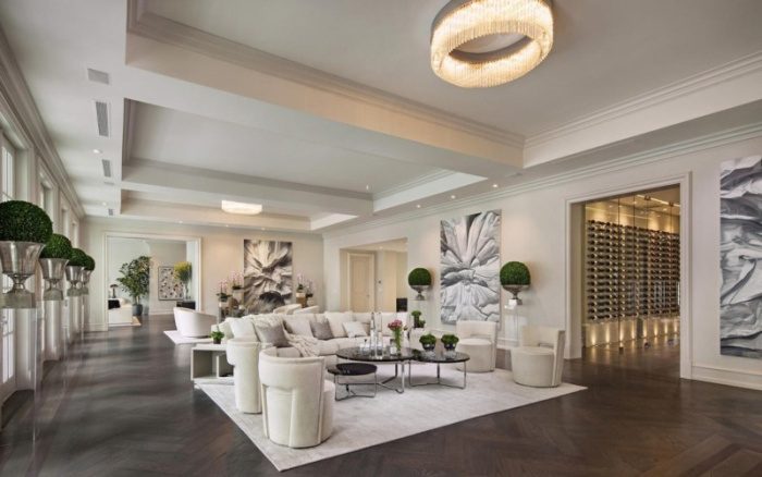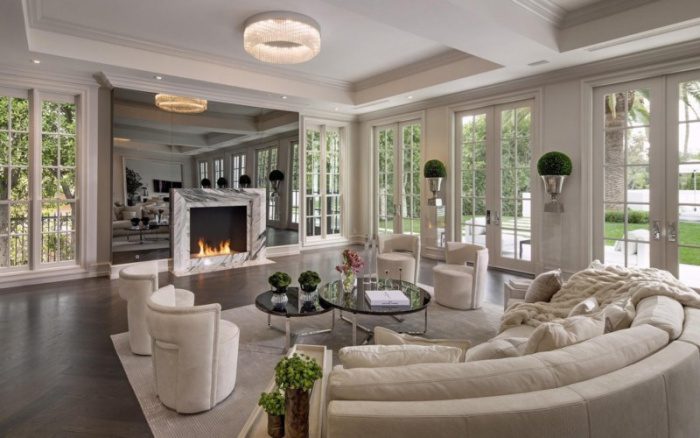 Um esquema de cores em tons branco e preto, com uma lareira de mármore branco enorme no meio da sala e decorações de cristal. Isso tudo conseguimos ver pelo próprio Floyd Mayweather Jr. que desfruta agora da sua reforma de ouro.