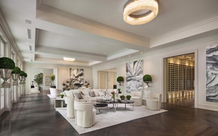 Com 15 096 metros quadrados, tem seis quartos e dez casas-de-banho. Além de um ginásio, uma piscina, uma adega e até uma sala de cinema.