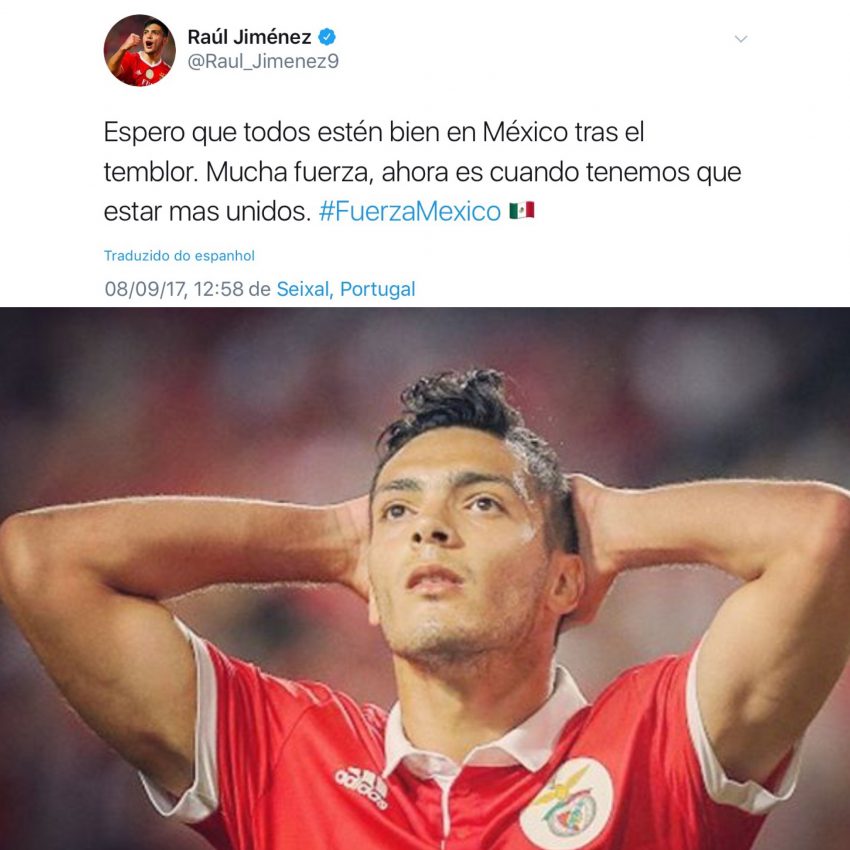 “Espero que todos estejam bem no México após o terramoto. Muita força, agora é quando temos que estar mais unidos. #ForçaMéxico”, escreveu o avançado do Benfica Raúl Jimenez.