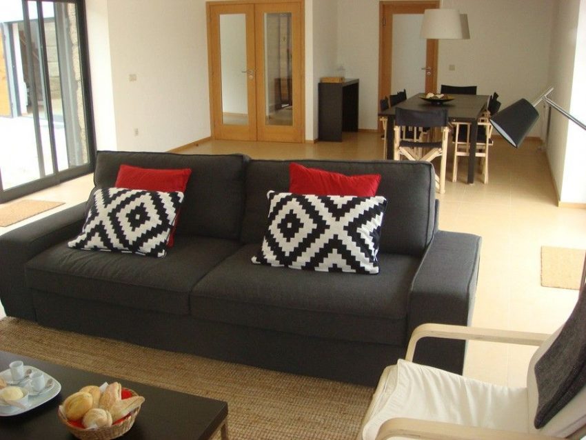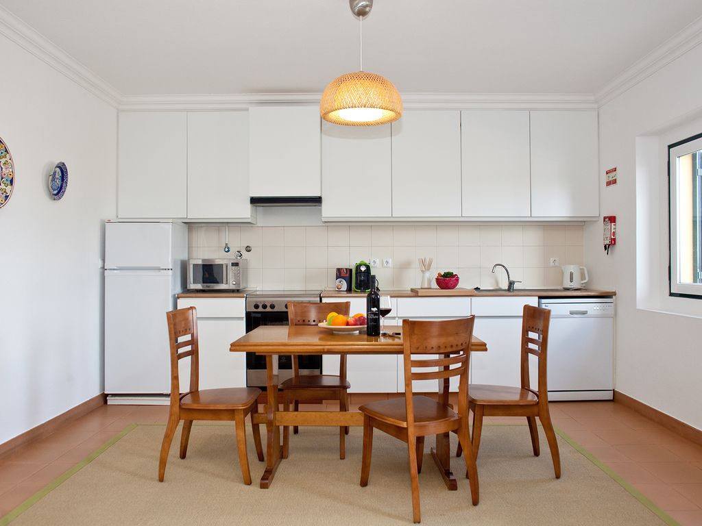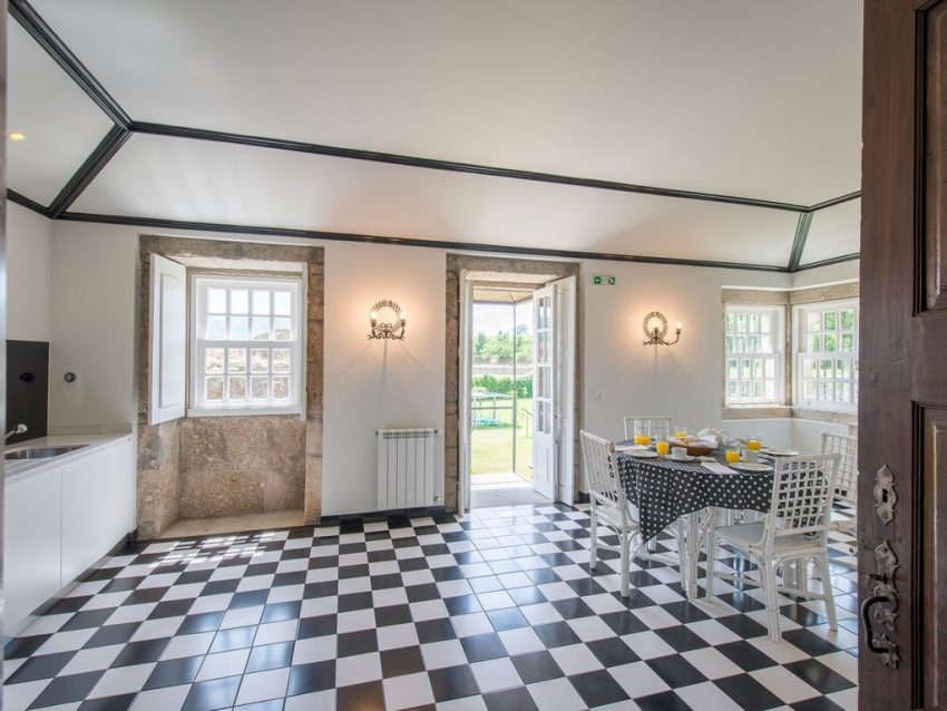 Dispõe na casa principal de sala de estar e jantar, sala de jogos, cozinha, 3 casas de banho, 2 suites e 2 quartos com capacidade para 8 pessoas e, num edifício contíguo, dispõe de mais 2 habitações de tipologia T1 com capacidade para um máximo de 7 (4+3) pessoas, ideal para alojar famílias ou grupos de amigos em férias em regime de self-catering.