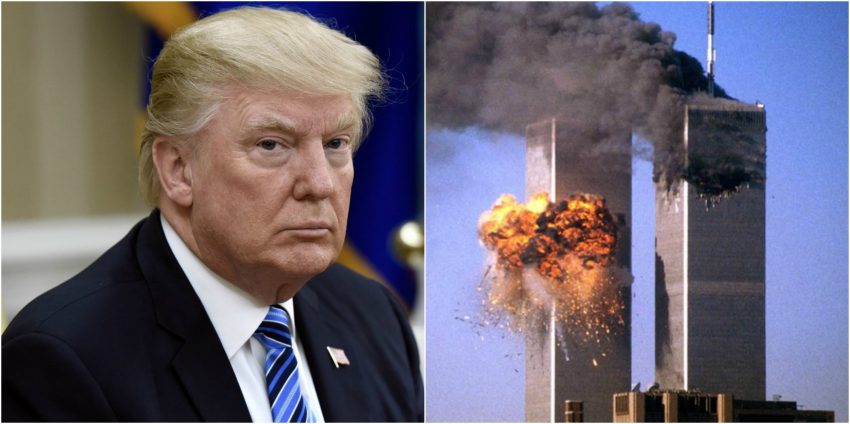 Primeiro, as reações de Trump ao atentado onde morreram 2996 pessoas.