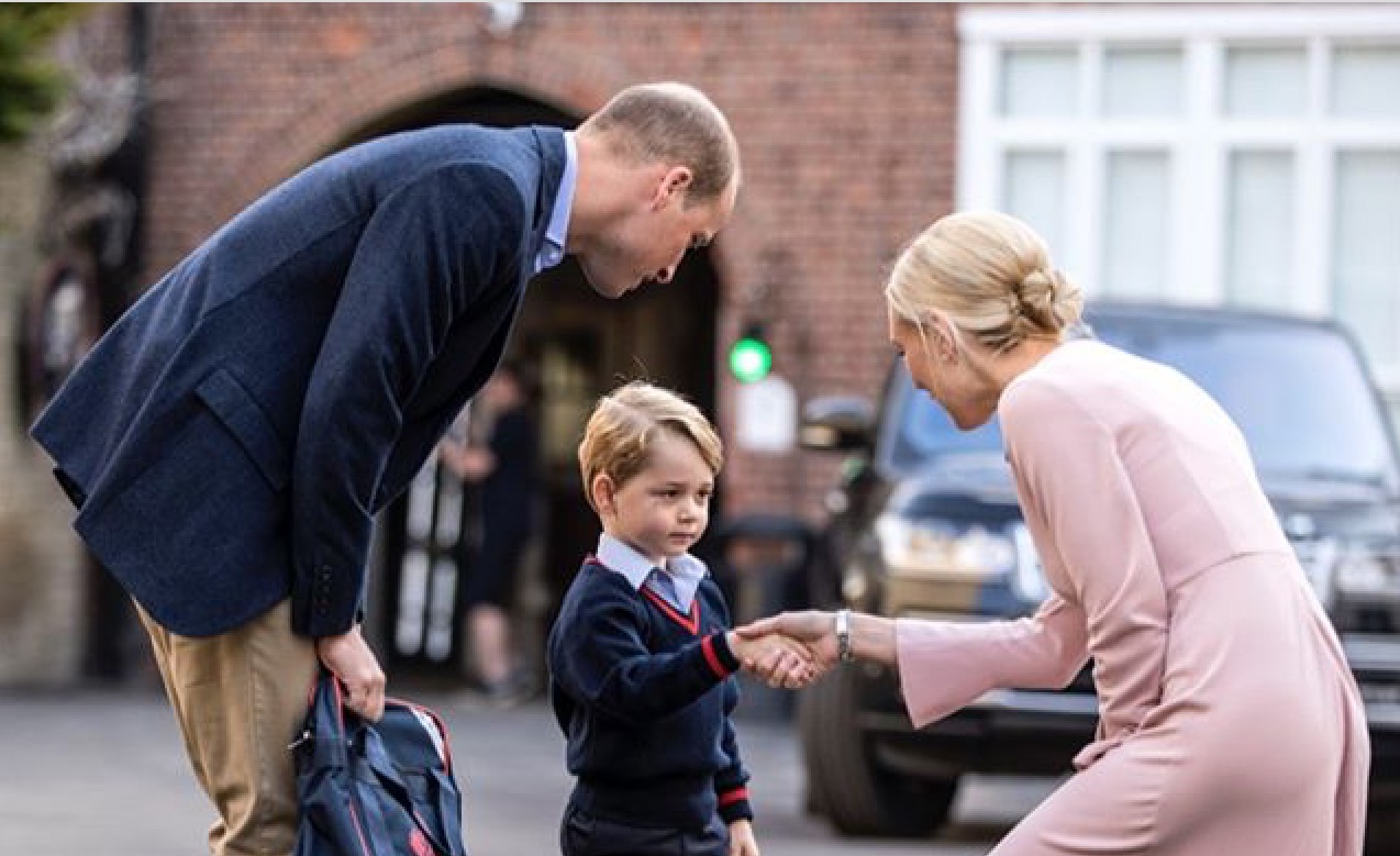 Sem a princesa Kate por perto, esta quinta-feira, o menino foi fotografado quando era recebido pela responsável da Thoma’s School, no elitista bairro londrino de Battersea, sendo notória a timidez de quem lida com o desconhecido.