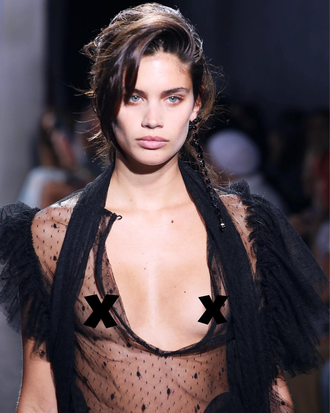 O visual era adequado ao estilo punk e romântico da nova coleção primavera/verão 2018 da marca, mas o facto de estar sem soutien e de se ver tudo é que merece a nossa atenção.