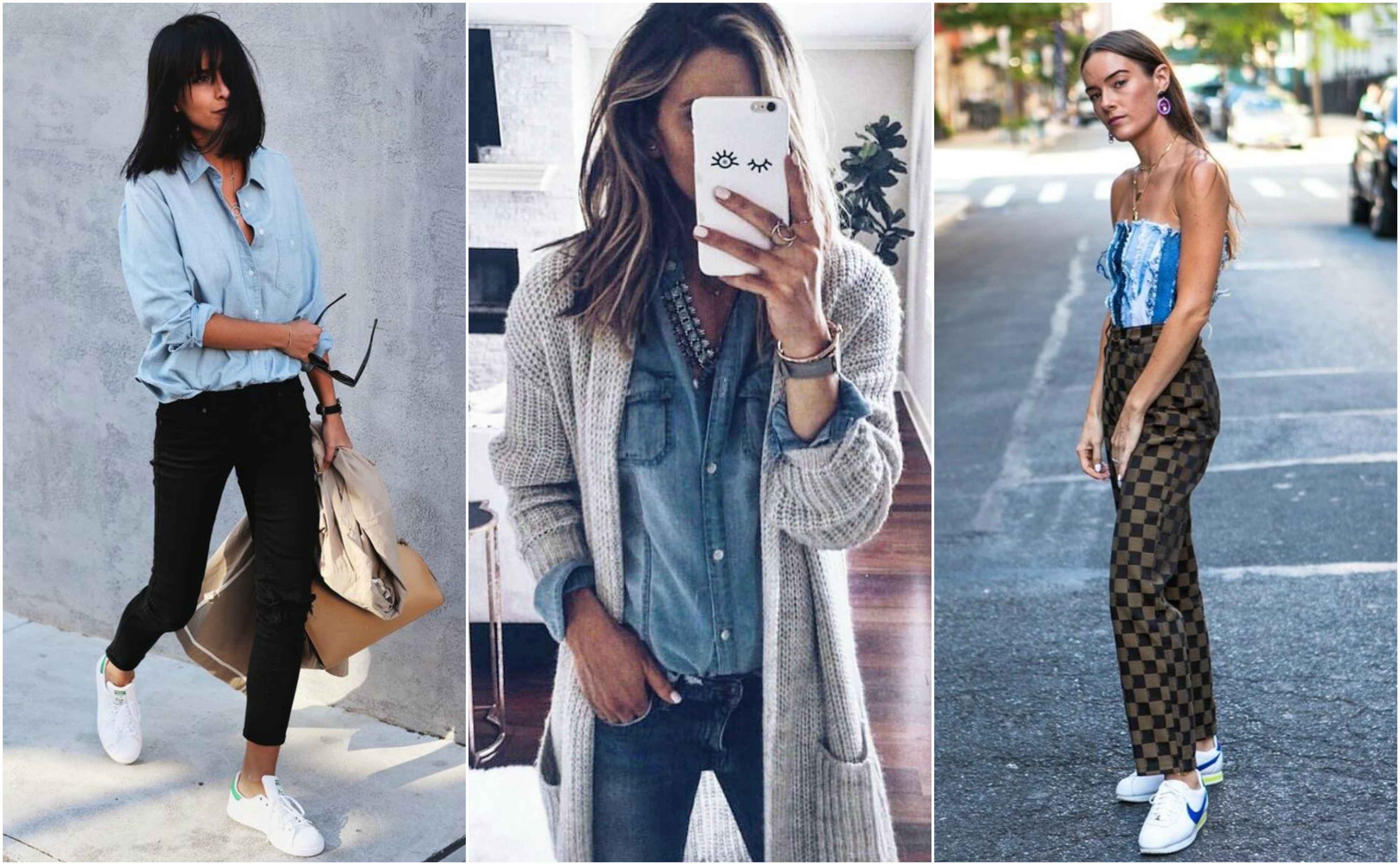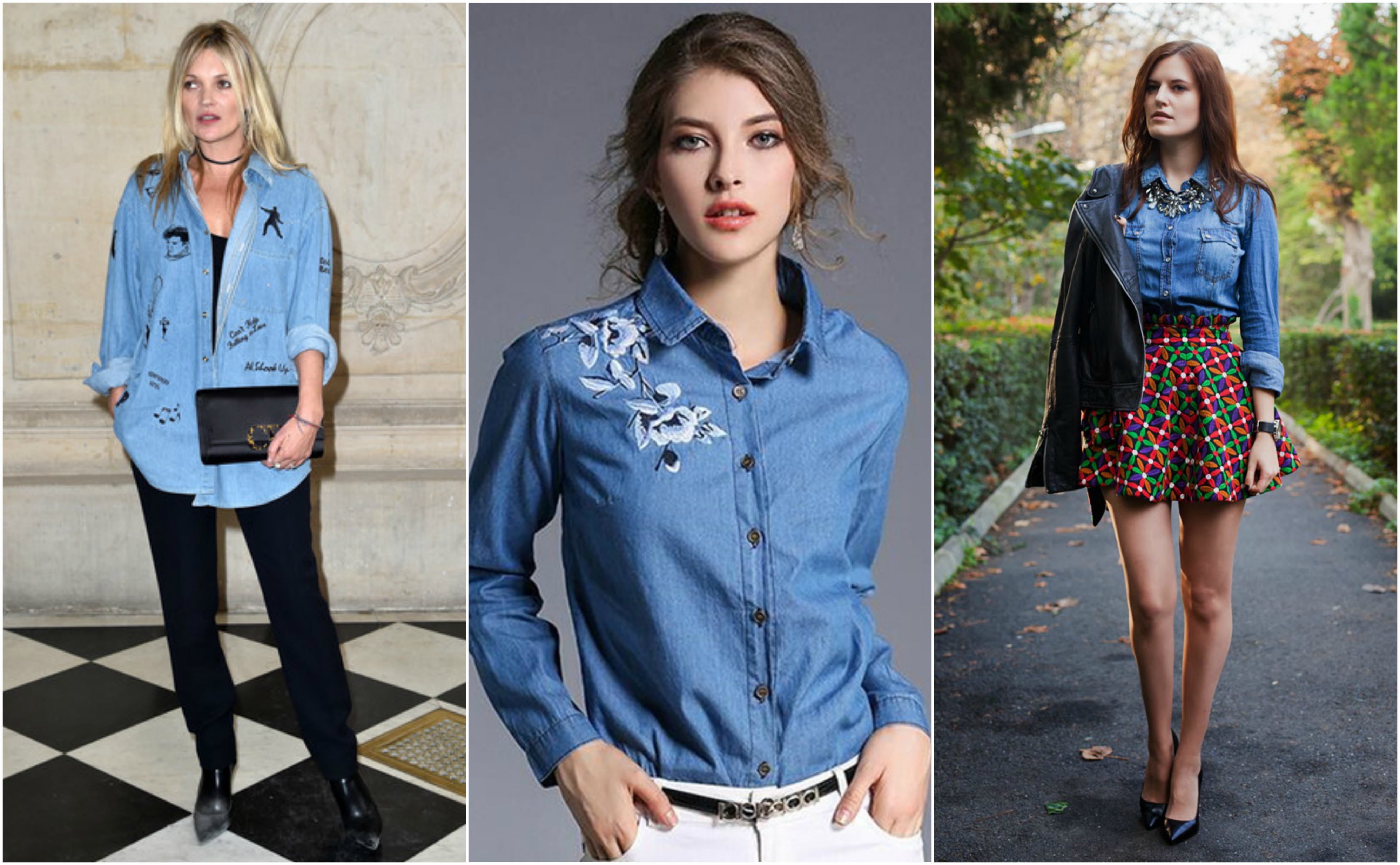 Quanto às camisas, não precisam ser as simples de ganga. Podem ter bordados, brilhantes ou outros acessórios.