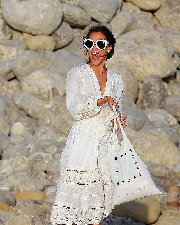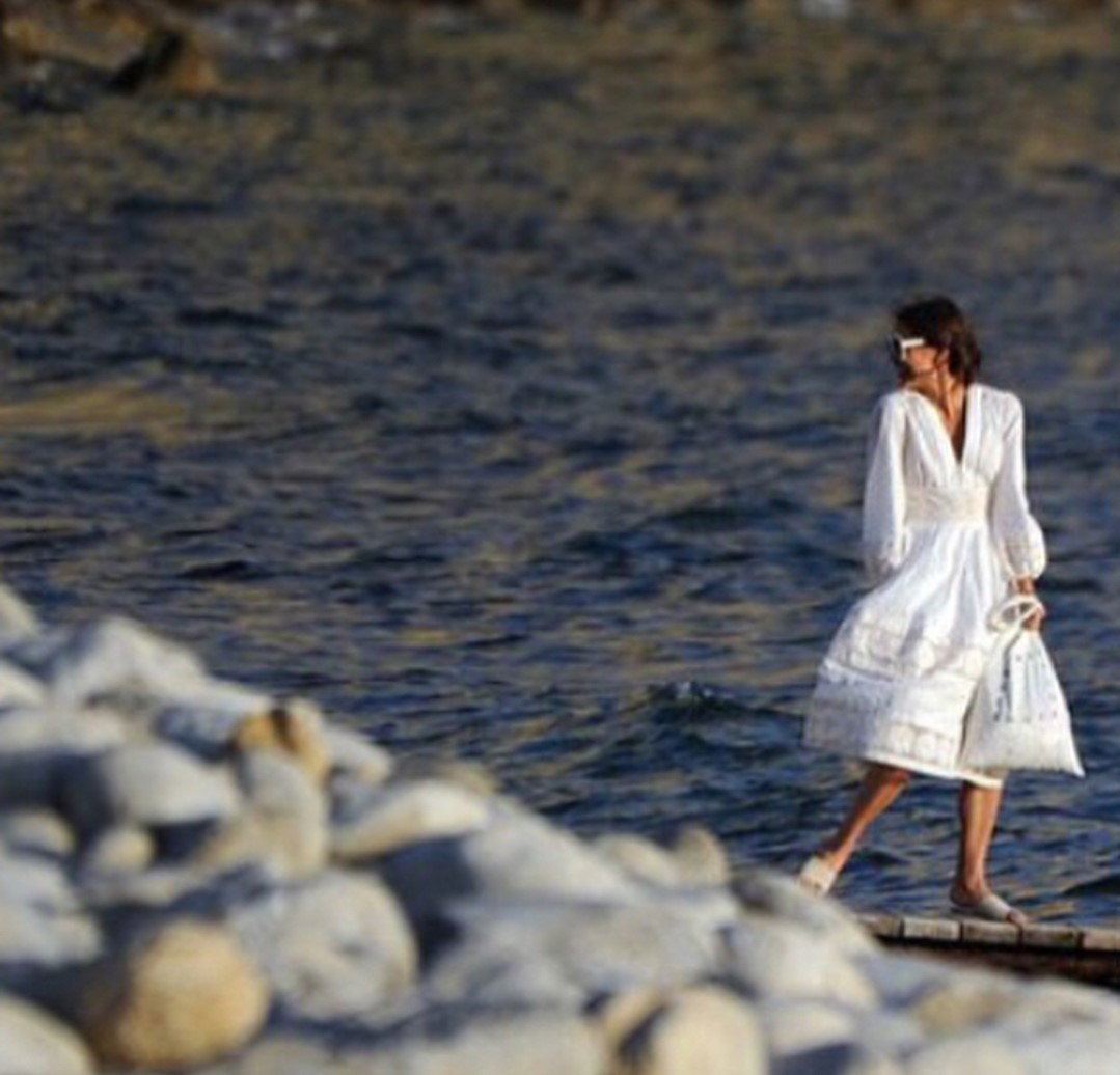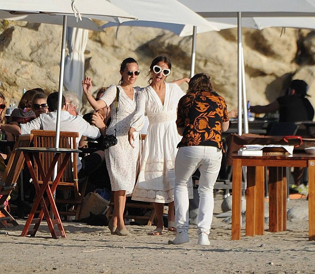 O ‘dress code’, se é que podemos dizer isso, era tipicamente de verão e elas levavam óculos de sol brancos em forma de coração. Alicia usava um vestido branco da marca Zimmermann Prima, que custa 795 dólares.