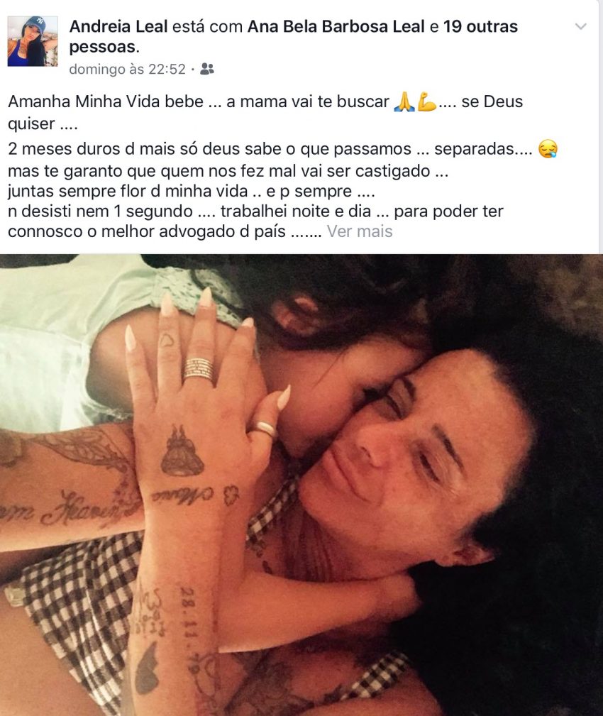 Assim mesmo dá conta Andreia Leal no Facebook onde, nos últimos dias, tem demonstrado estar em desespero. Sem explicar a razão de ter sido afastada da menina, garante: “Quem nos fez mal vai ser castigado”.