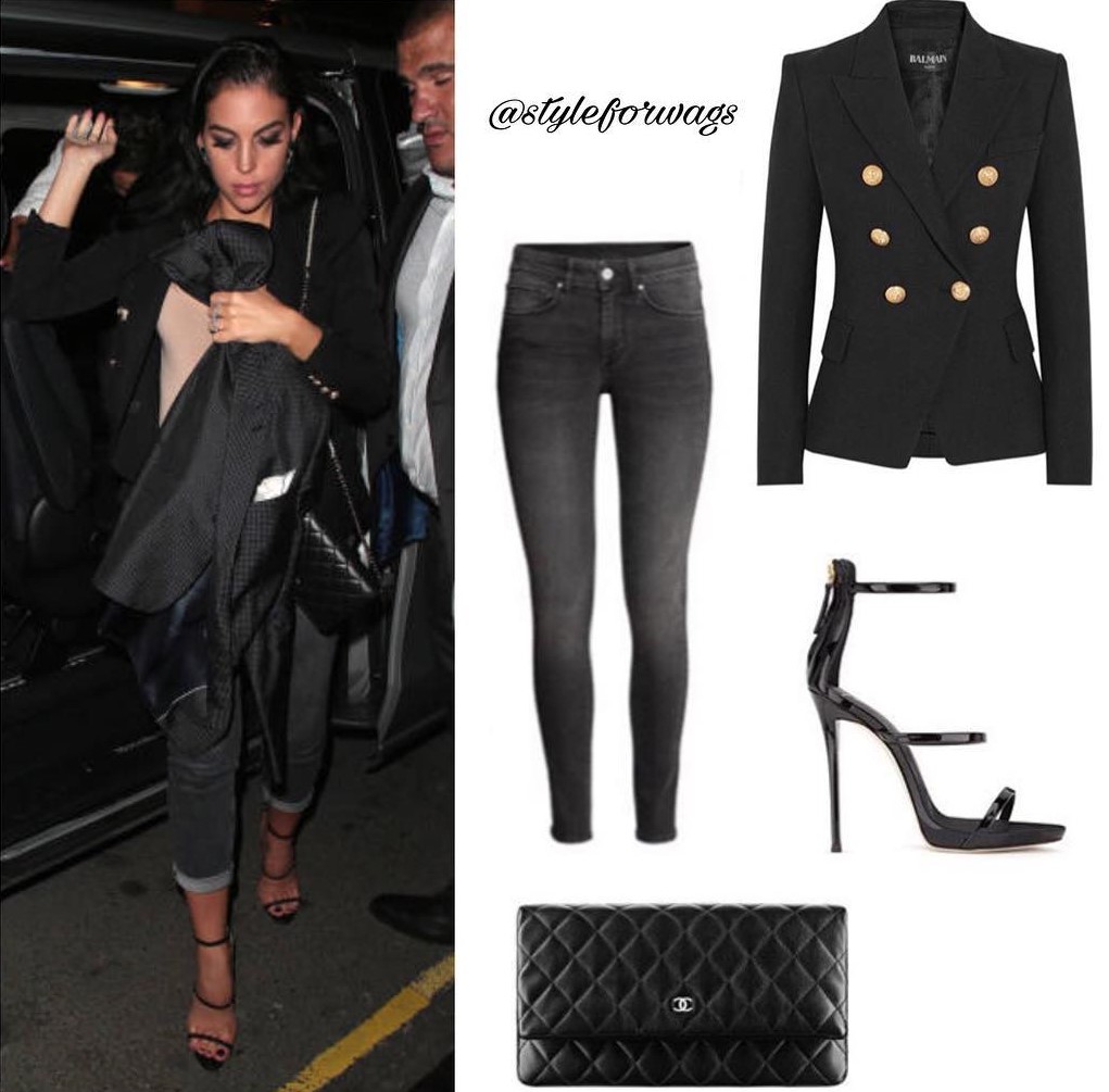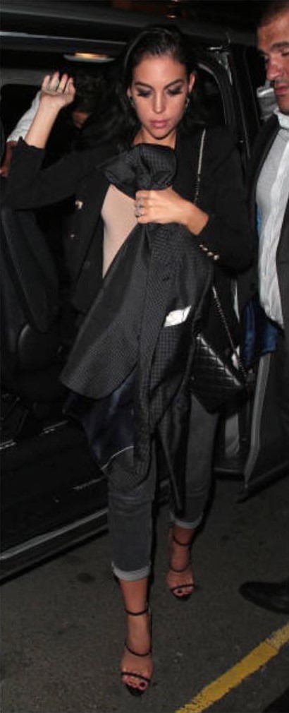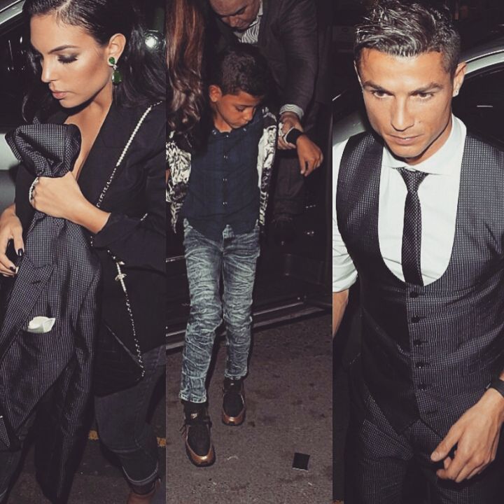 Georgina Rodríguez e Cristianinho acompanharam Cristiano Ronaldo. A modelo trocou de look, tirando o vestido Ángel Schlesser que tinha e colocando umas calças pretas de ganga da H&M, um top nude e um blazer da Balmain (que custa 1790 euros).