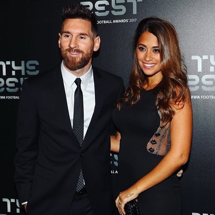 Antonella Roccuzzo e Lionel Messi foram dos primeiros a chegar à cerimónia e a mulher do argentino, que anunciou a terceira gravidez há dias, estava deslumbrante.