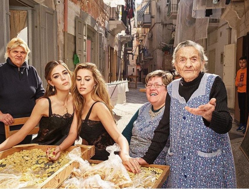 Na cidade velha de Bari, na região de Apúlia, em Itália, as filhas do ator Silvester Stallone contracenaram com habitantes locais, senhoras já com alguma idade, que preparavam a ‘orecchiette’, um tipo de massa típica.