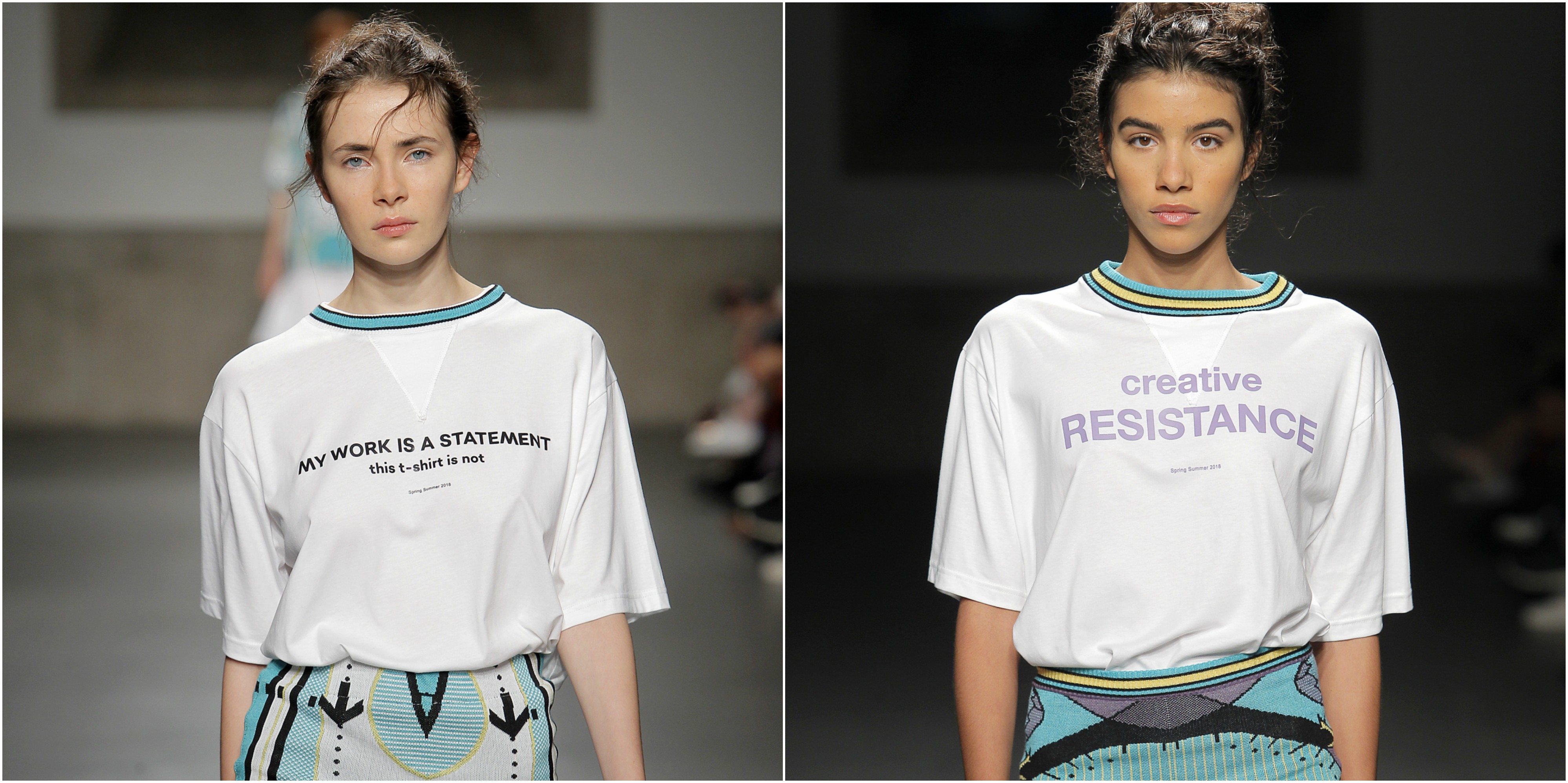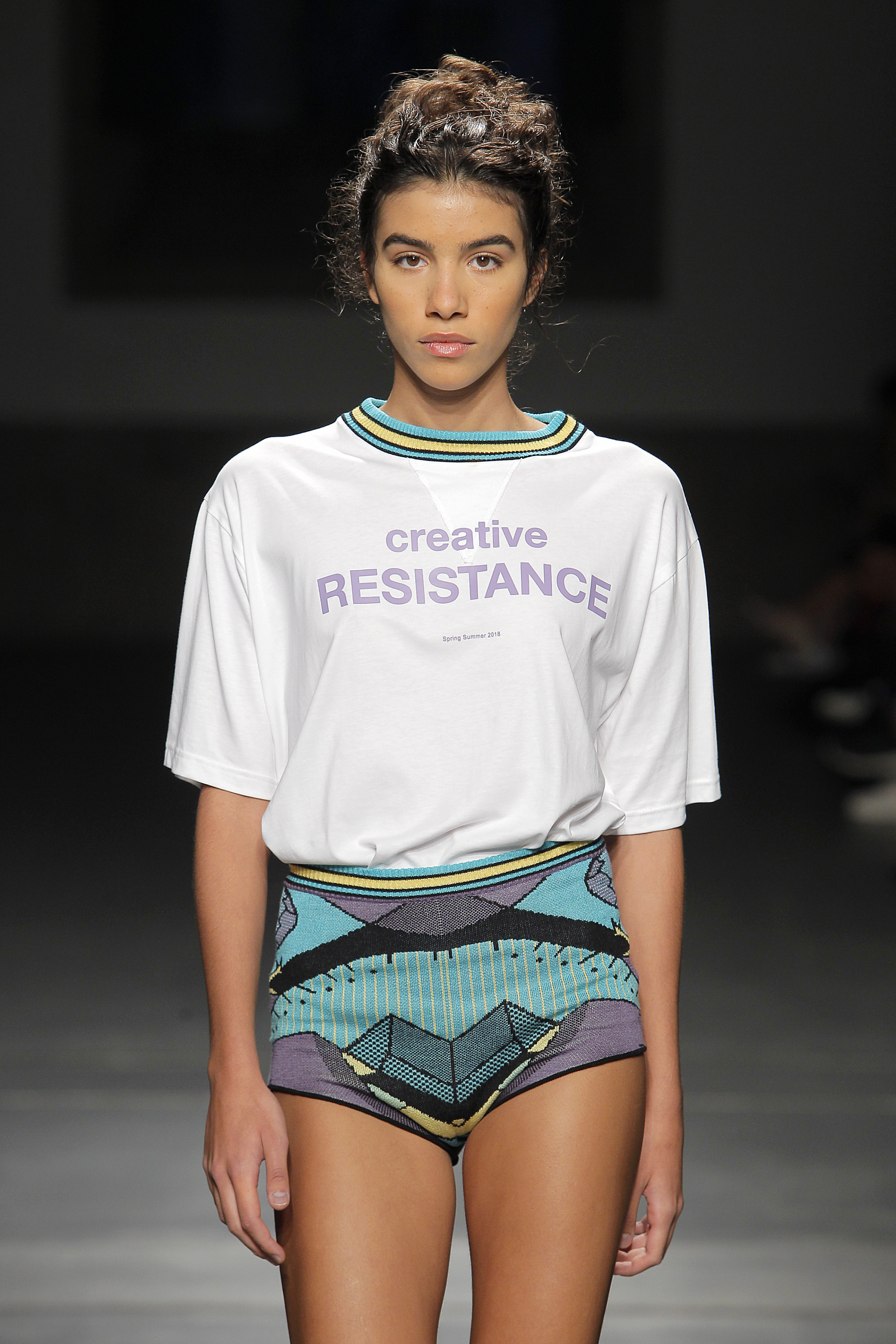 Esta foi a fonte de inspiração de Susana Bettencourt para a coleção primavera/verão 2018 ‘Creative Resistance’ (Resistência Criativa). Não propriamente a defesa do feminismo mas sim a igualdade de todos os seres humanos.