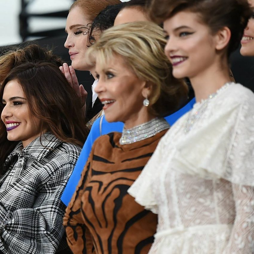 Personalidades como Jane Fonda, Helen Mirren, Doutzen Kroes, Barbara Palvin, Bianca Balti, Adwoa Aboah, Winnie Harlow e as brasileiras Luma Grothe e Valentina Sampaio desfilaram um total de 70 looks de maquilhagem e cabelo, criados por Val Garland e Stéphane Lancien, respetivamente.