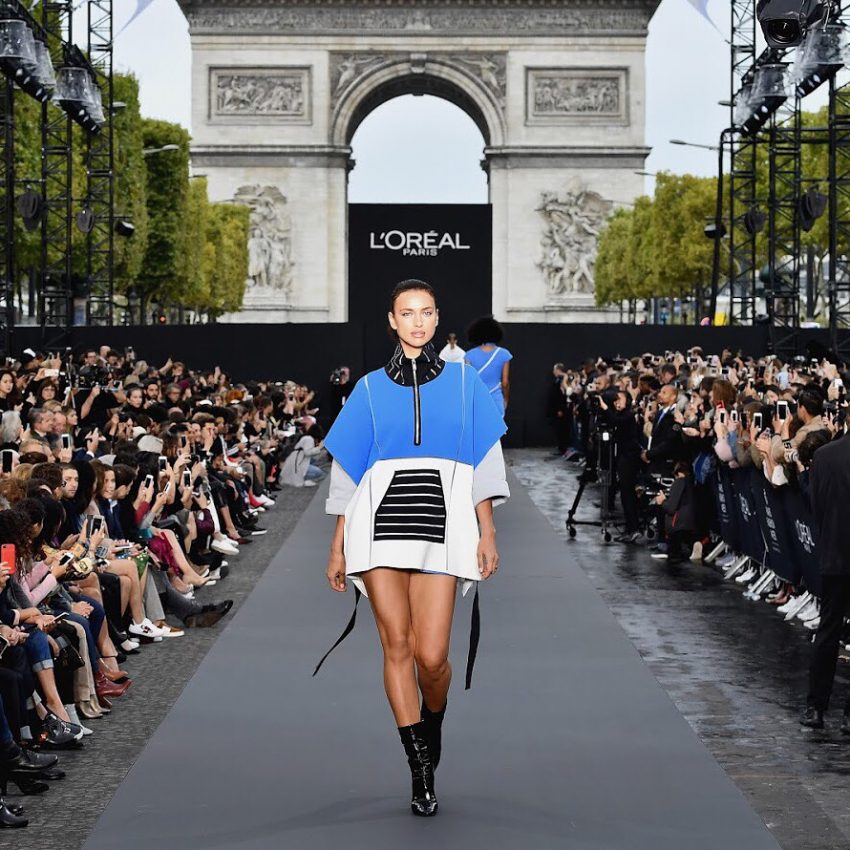 A manequim russa, de 31 anos, desfilou no domingo, em plenos Champs-Élysées, para a L’Oréal. Imagem da marca francesa, Irina Shayk não desapontou.