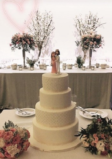 Já noutras imagens vemos o bolo dos noivos e pormenores da decoração do copo de água no salão de festas da Ordem dos Médicos, em Lisboa.