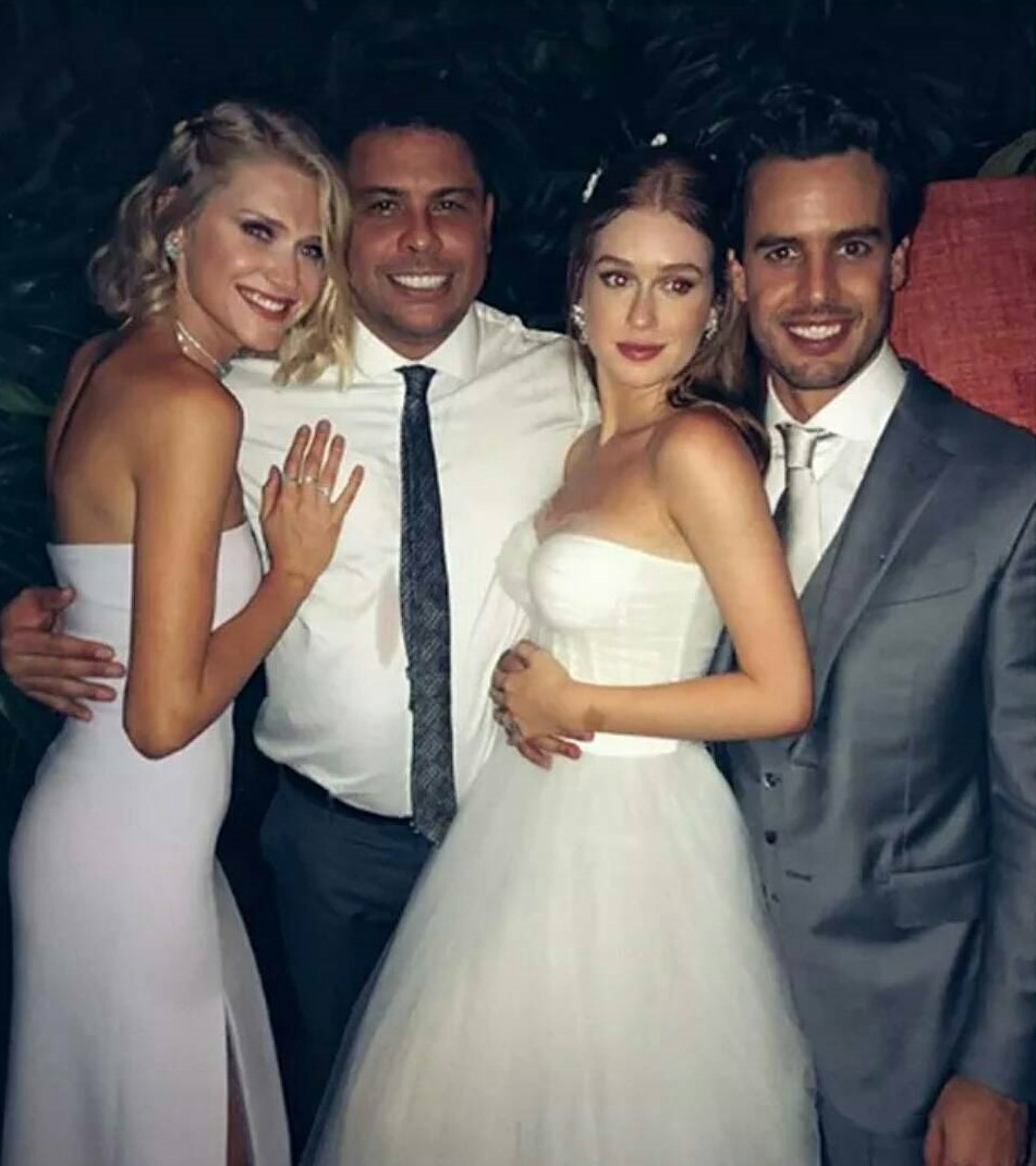 Celina Locks, namorada de Ronaldo (o fenónemo, ex-jogador de futebol) desde 2015, foi a felizarda que apanhou o bouquet da noiva.