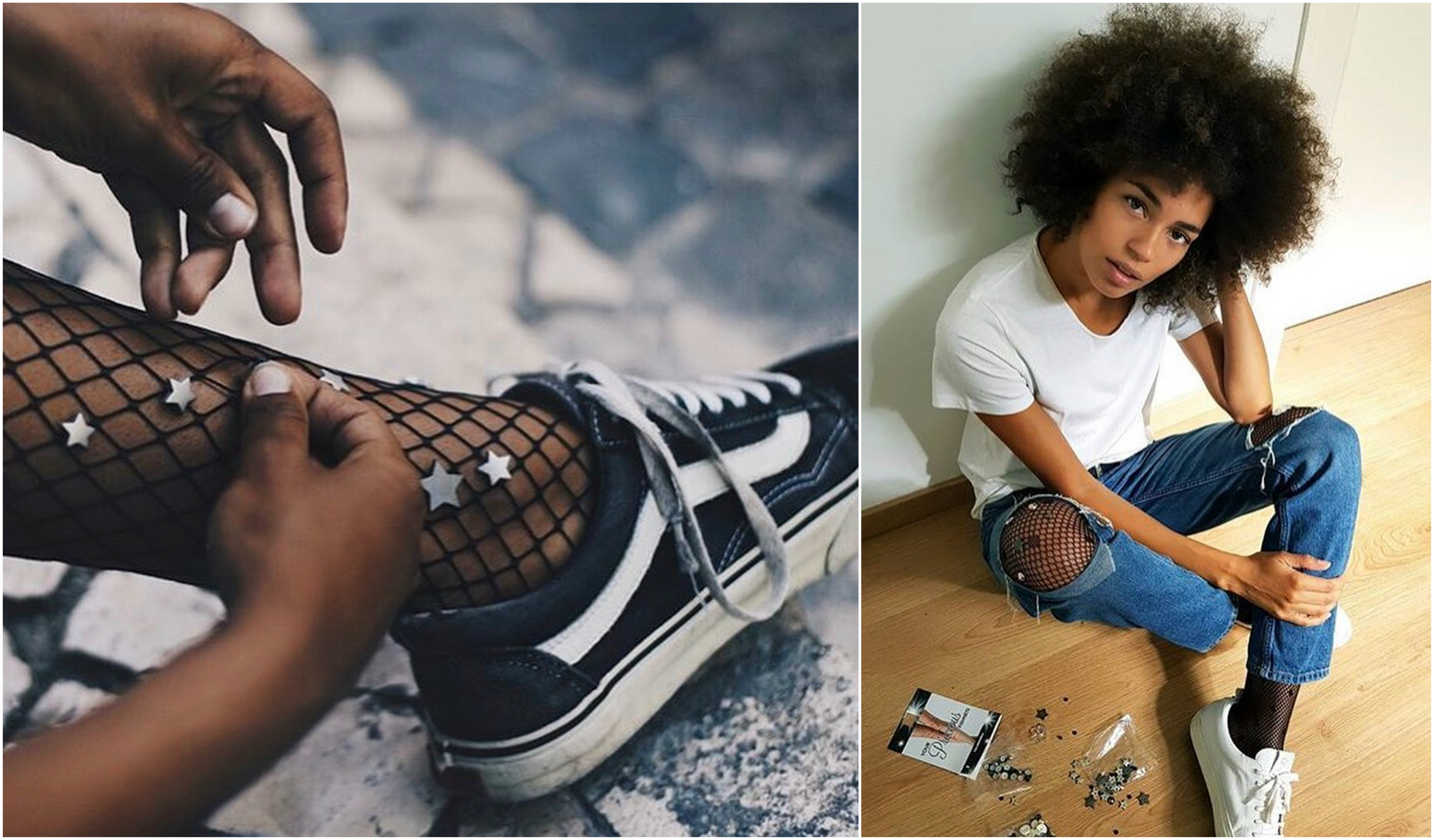 A Calzedonia até trouxe a versão de personalizar as meias de rede. Pode fazê-lo com estrelas, berloques e apliques de diferentes formatos.