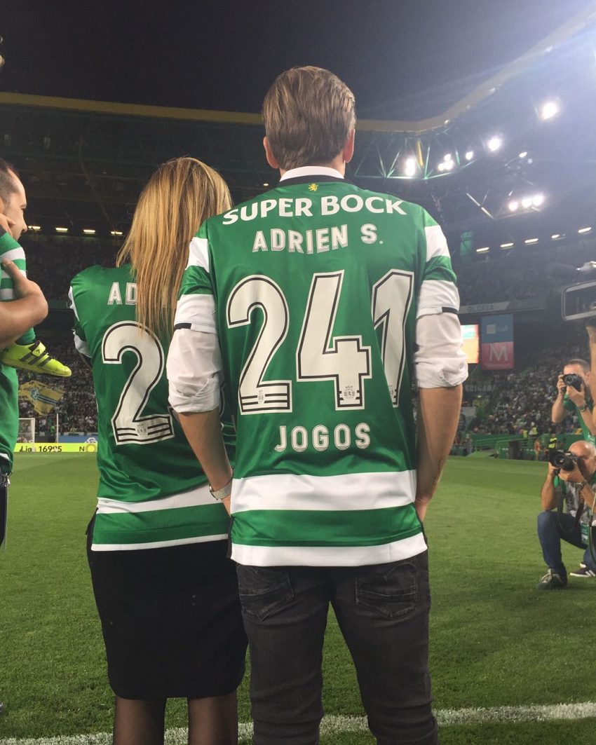 Adrien Silva fez um discurso emocionado no intervalo do jogo entre o Sporting e o FC Porto (que terminou com um empate a zero) e recebeu uma camisola do clube com o número 241, em alusão ao número de encontros realizados ao serviço do Sporting.
