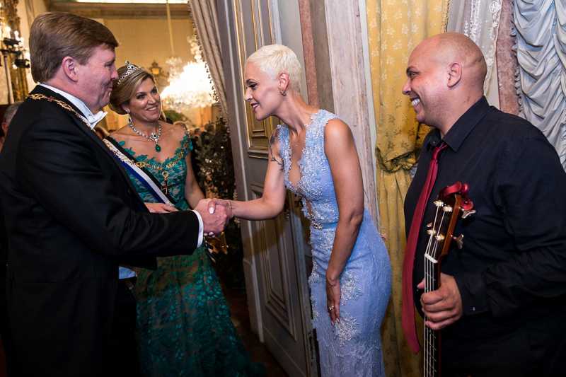 Máxima surgiu de vestido verde, igualmente do estilista holandês Jan Taminiau.