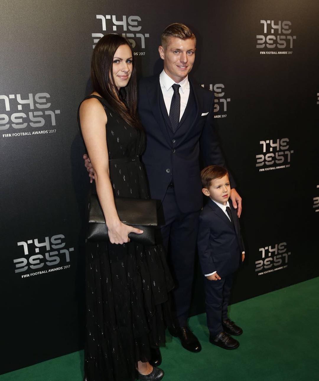 A família Kroos fez jus à sua nacionalidade e foi toda vestida de Hugo Boss, filho pequeno incluído.