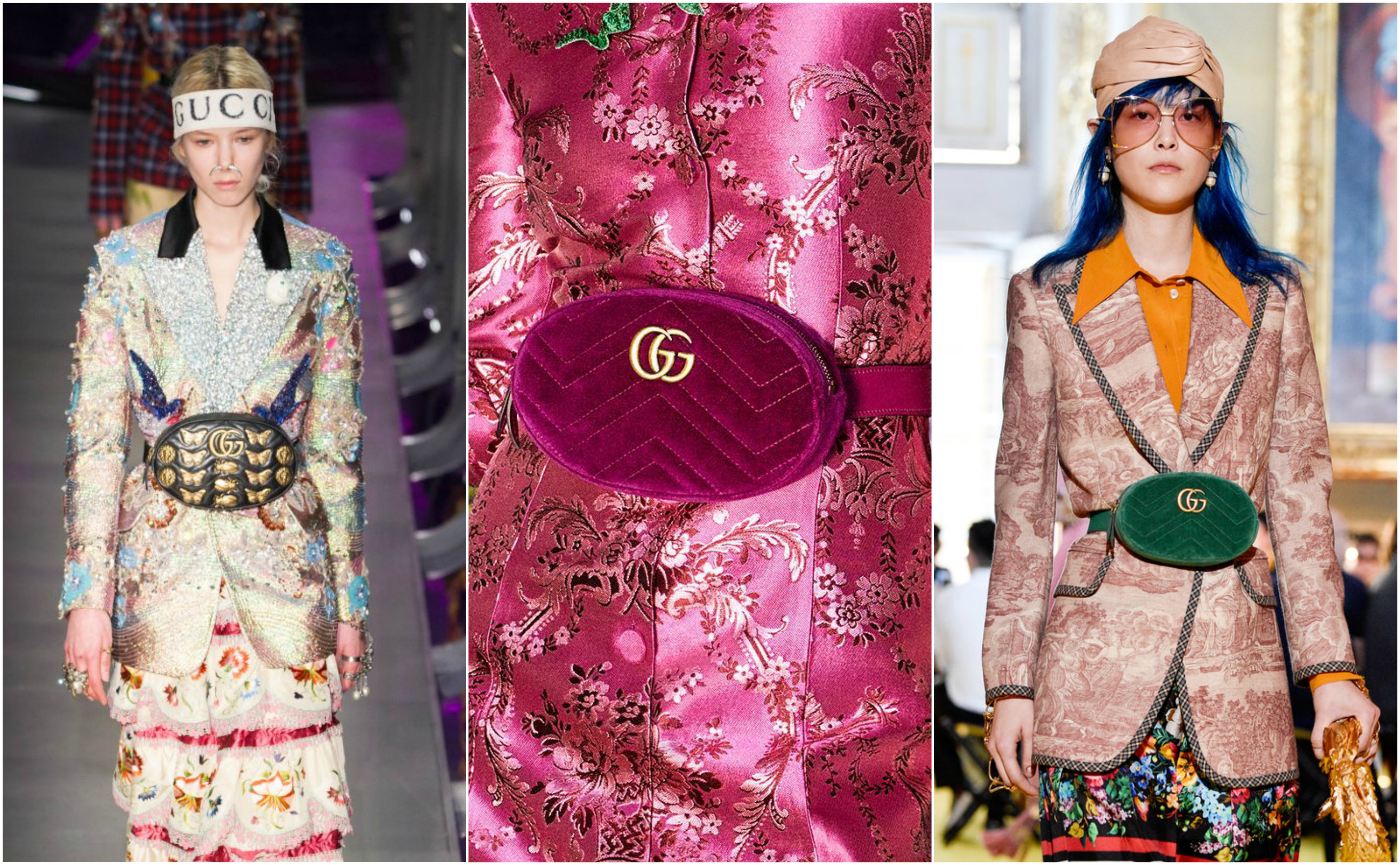A Gucci, por exemplo, foi uma das que incluiu as pochetes como parte integrante da coleção outono/inverno 2017/18.