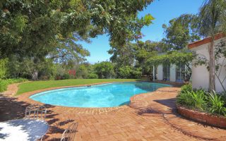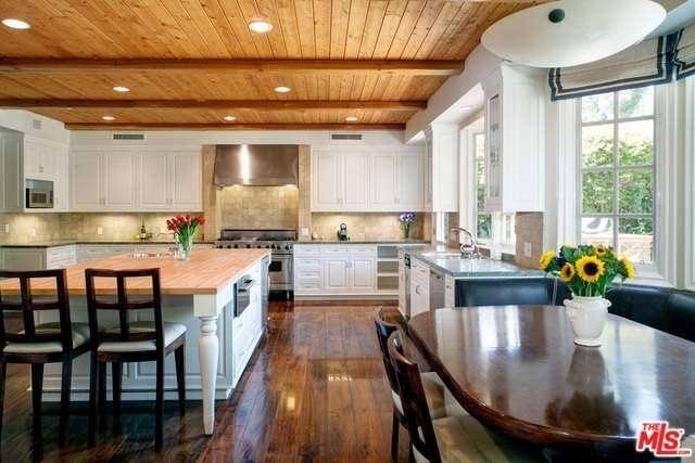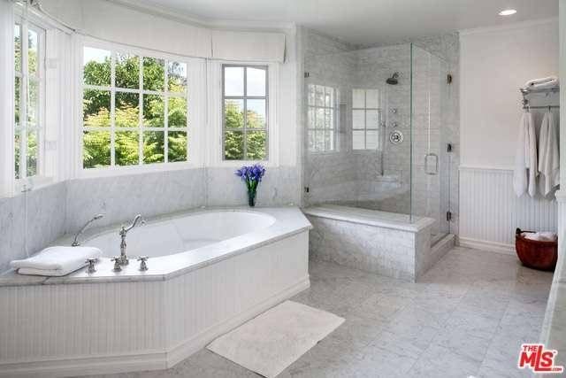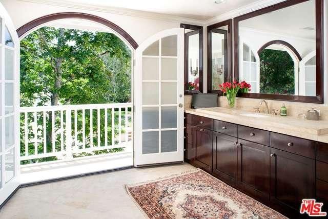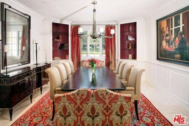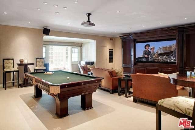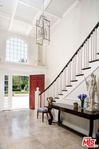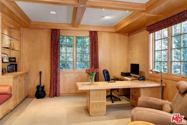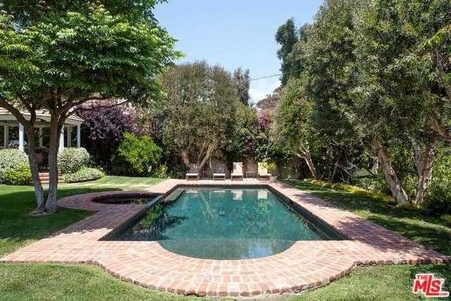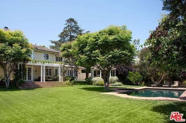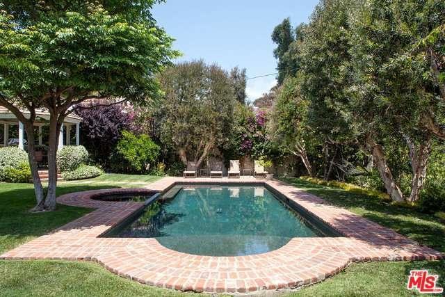 A casa tem cinco quartos e oito casas-de-banho dispersas por 8609 metros quadrados e está localizada numa extensa área com relvado, uma piscina e spa, além de uma área de churrasco.
