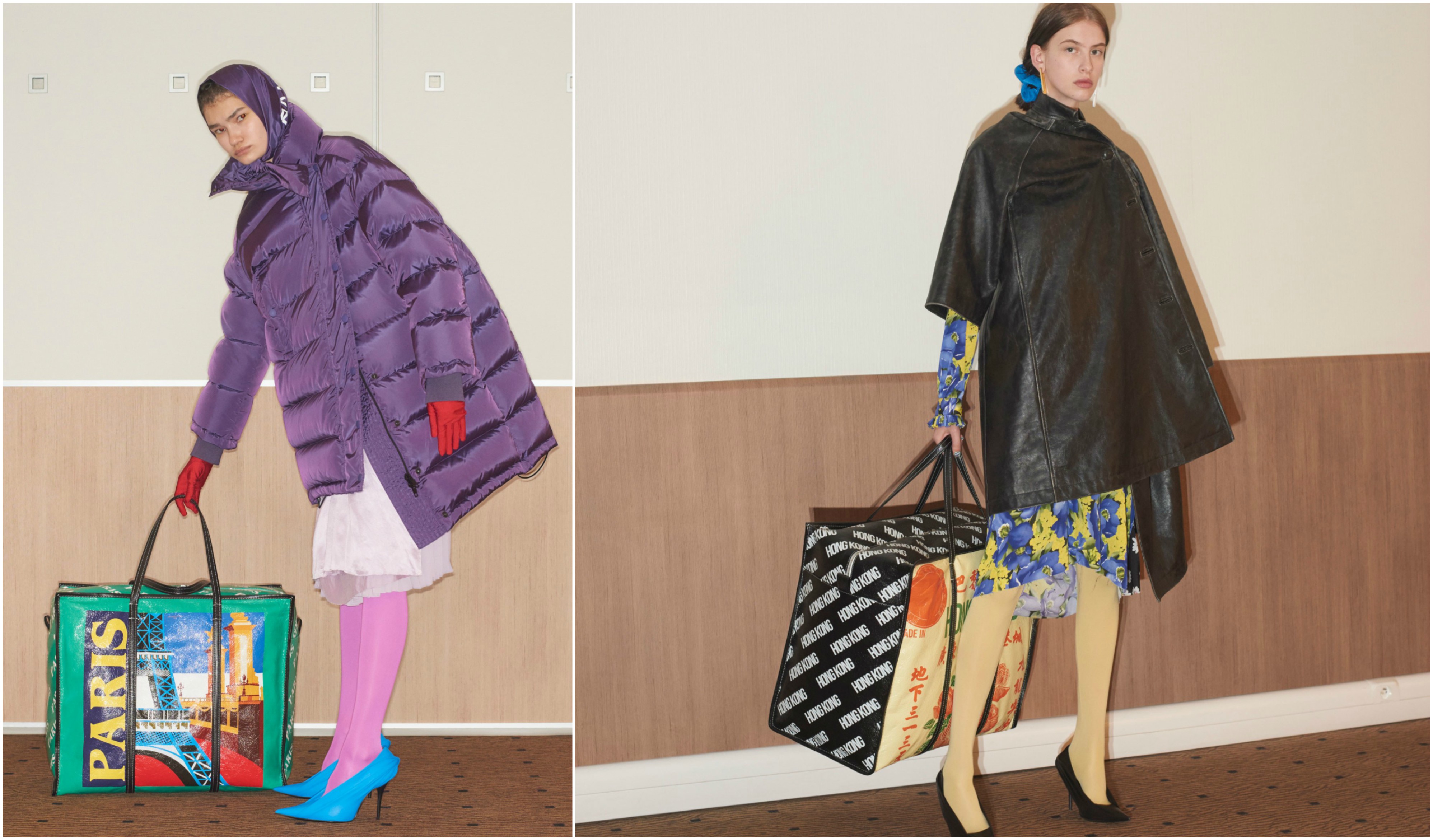 E agora Demna Gvasalia, designer da Balenciaga, mostrou novamente o seu sentido de humor ao lançar várias propostas de sacos de plástico acolchoados. Nos sacos vem uma impressão, na diagonal, do logotipo da marca e de letras garrafais e coloridas de cidades europeias como Paris, Milão e Londres.