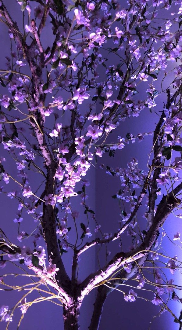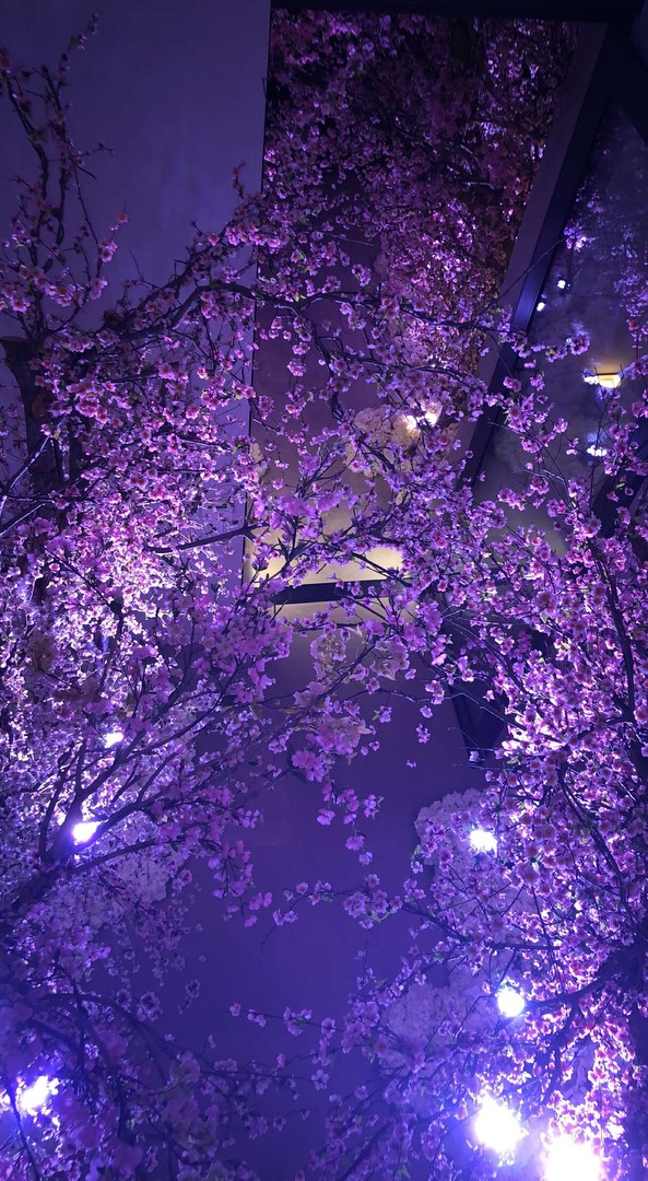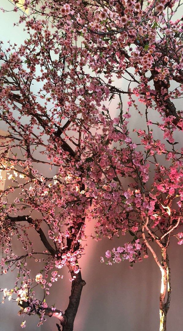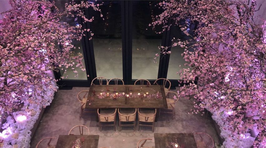 Ainda que descreva a celebração como “simples”, não vemos nada de simples em encher o espaço com árvores de flor de laranjeira.
