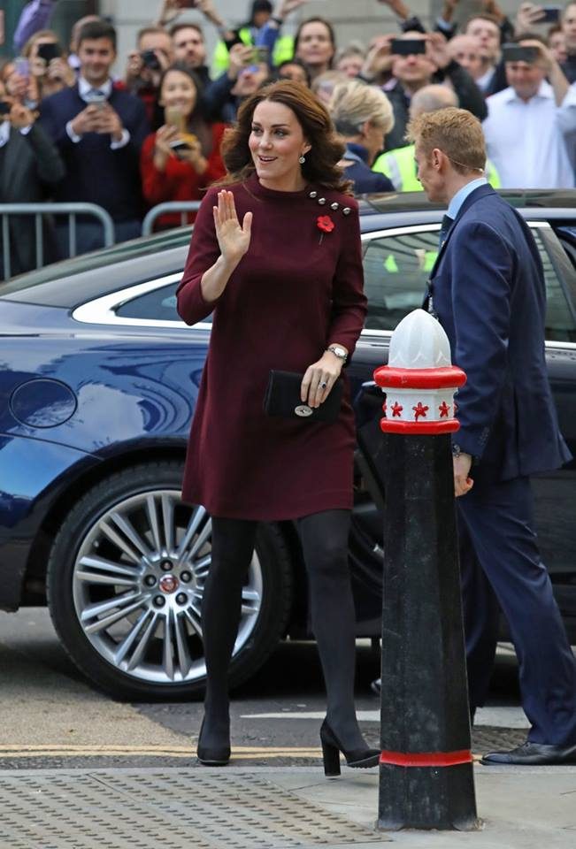 Esta quarta-feira de manhã, dia 8, Kate Middleton surgiu no Fórum dos Líderes Escolares Place2Be como parte do seu trabalho na área da saúde mental e do bem-estar das crianças. Grávida de quatro meses do terceiro filho, a jovem usou um vestido túnica da marca britânica Goat.