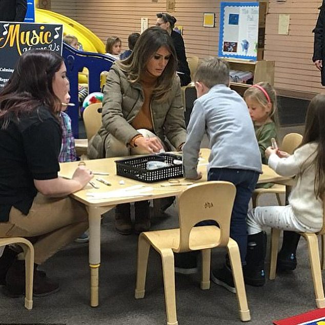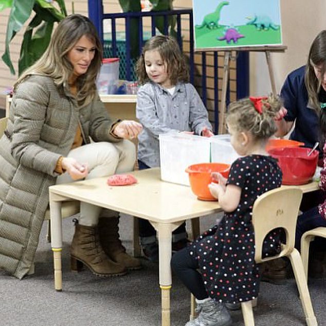 Com um casaco bem quente da Ralph Lauren, com uma camisola de gola alta amarelo torrado, calças da sua marca de eleição J. Brand e botas de salto alto, Melania brincou, tocou uma harmónica improvisada e conviveu com alunos e professores daquele centro da Joint Base Elmendorf-Richardson.