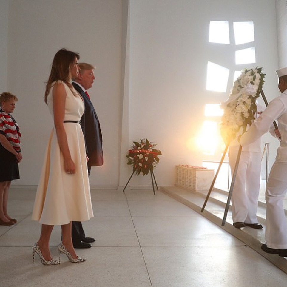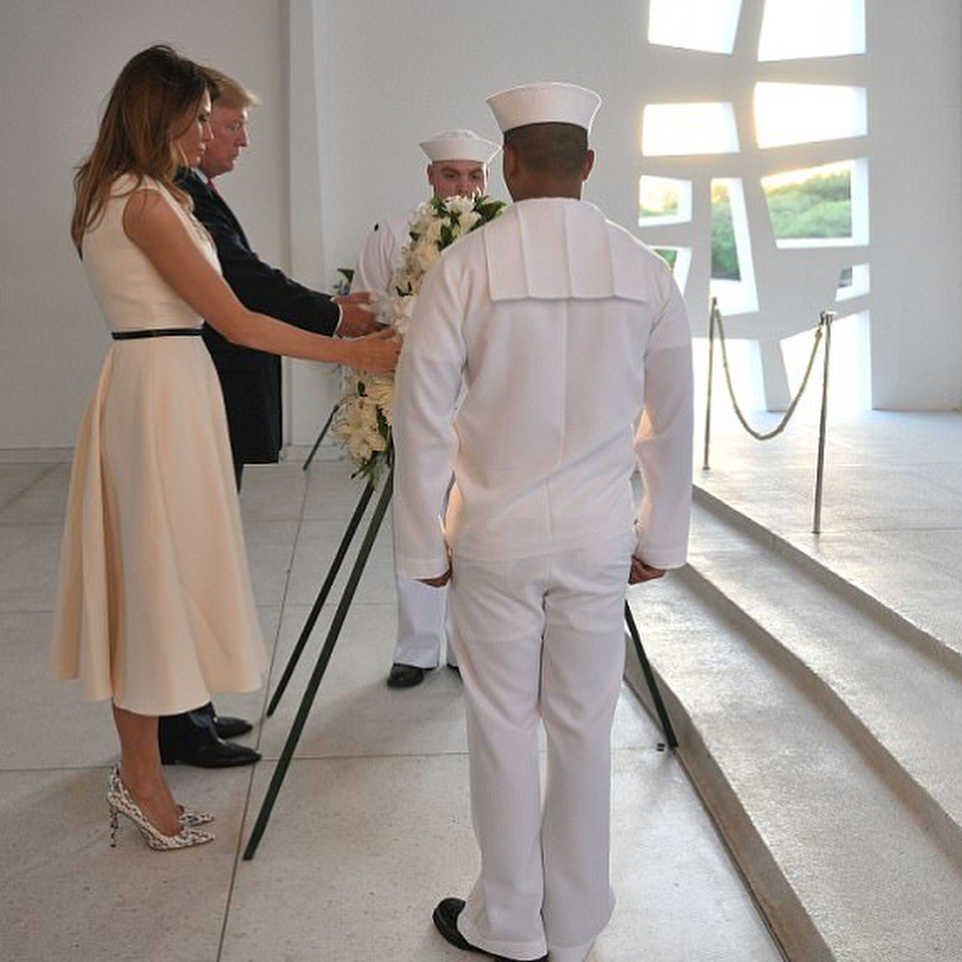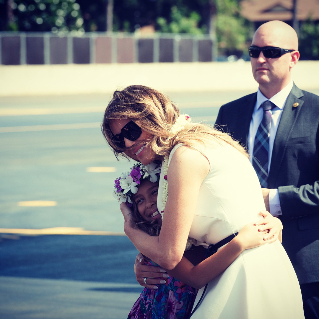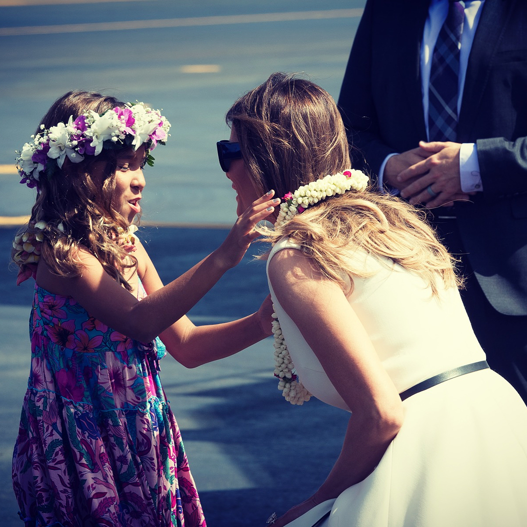 A Primeira-Dama dos EUA também voou da Casa Branca para a ilha do Oceano Pacífico, primeiro ponto da viagem de Estado que farão à Ásia. E, ao contrário da enteada que não gastou muito para estar na moda, a ex-modelo manteve-se fiel a determinadas maisons e ao seu estilo clássico e elegante.