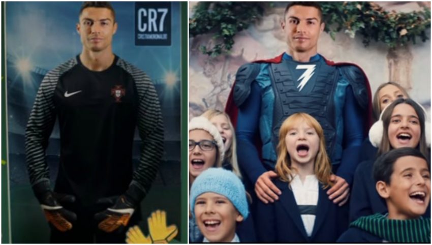 Agora, no mesmo âmbito natalício, os dotes de Cristiano Ronaldo na área da representação alargaram-se, ao encarnar um super herói, um basquetebolista, um chef e, surpreenda-se, um… guarda-redes.