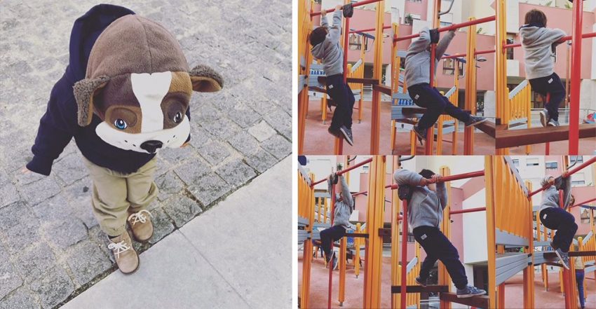 De regresso a casa por algumas horas, Tânia Ribas de Oliveira levou os filhos à escola e ainda vibrou com as aventuras dos meninos, principalmente com as do mais velho, Tomás, que parece dado a desportos radicais. Já o mais novo, Pedro foi “disfarçado” de cãozinho para a escola, ou melhor, com um divertido carapuço contra o frio.