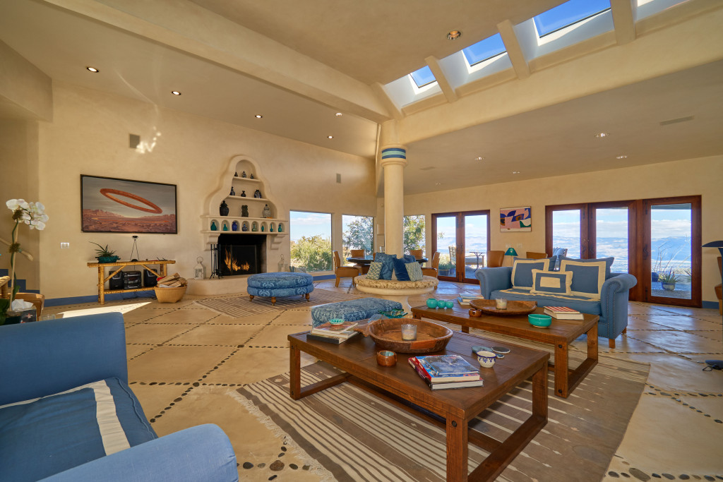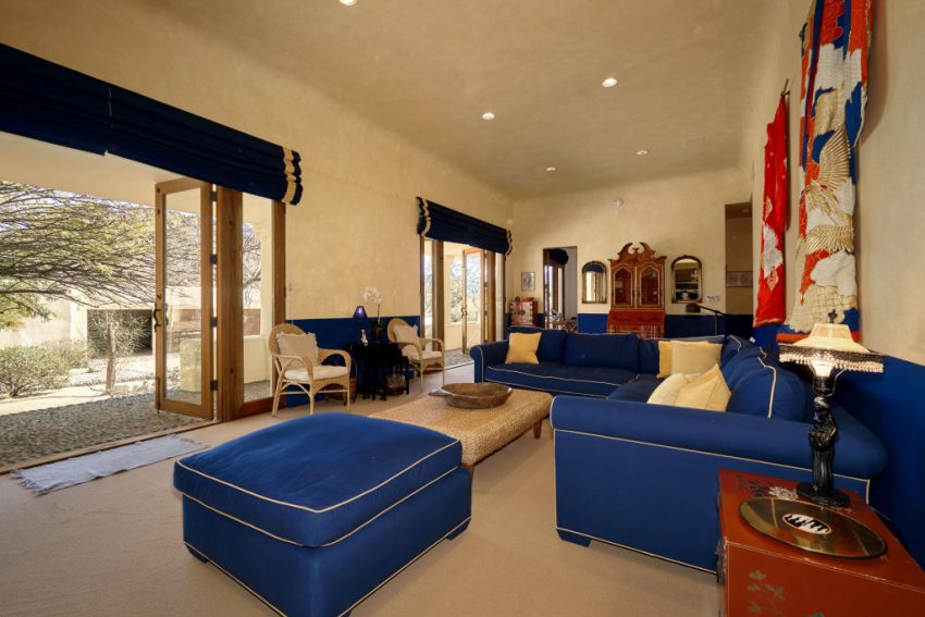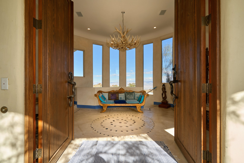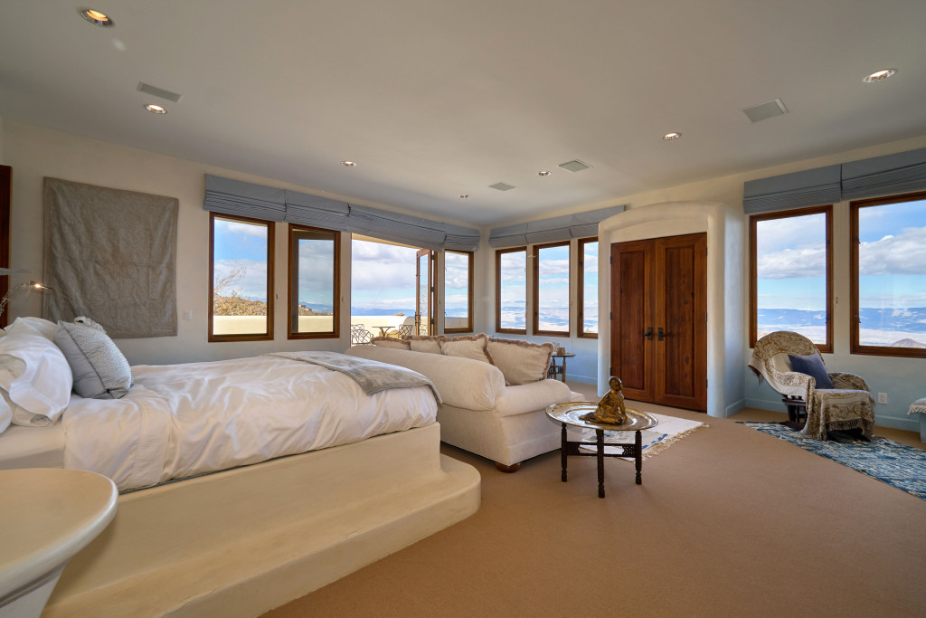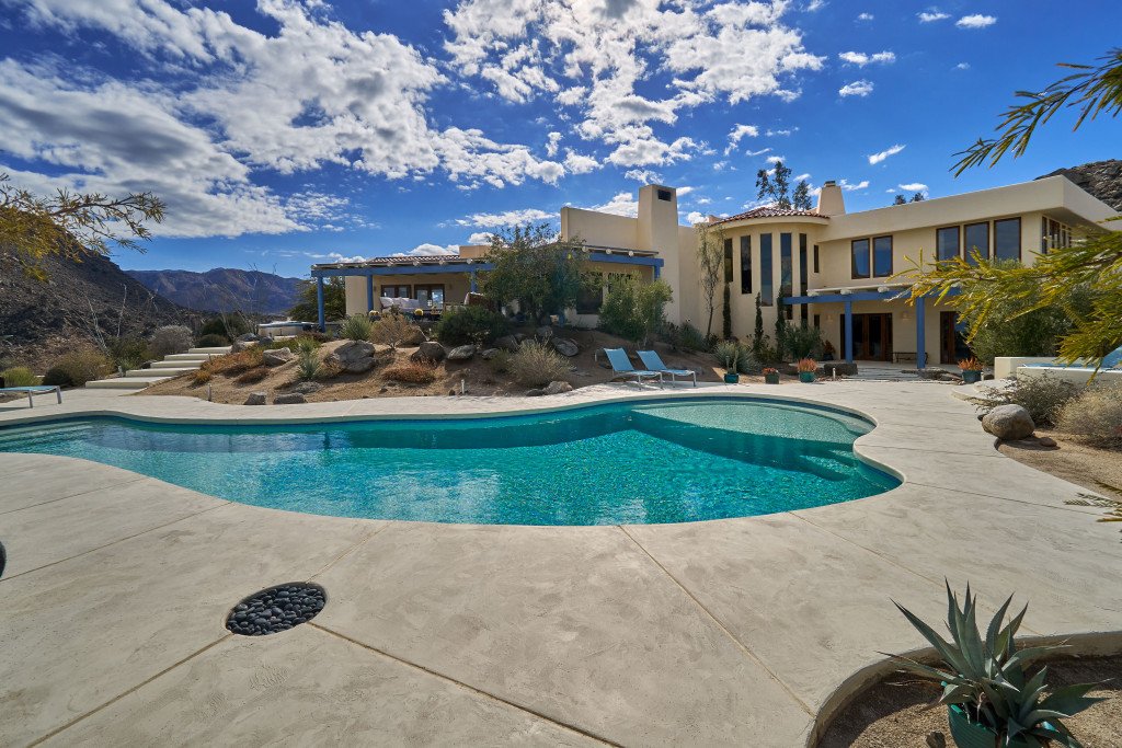 Dentro da casa principal de dois andares, que possui vistas panorâmicas sobre o Vale Coachella e o Canyon, existe um bar, um estúdio de arte e um cinema.