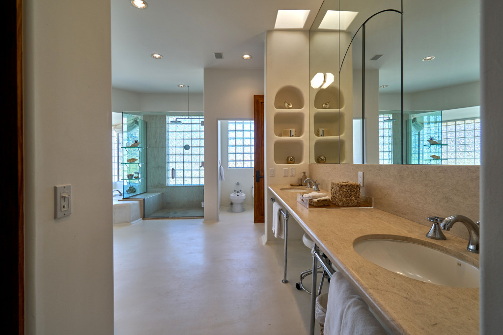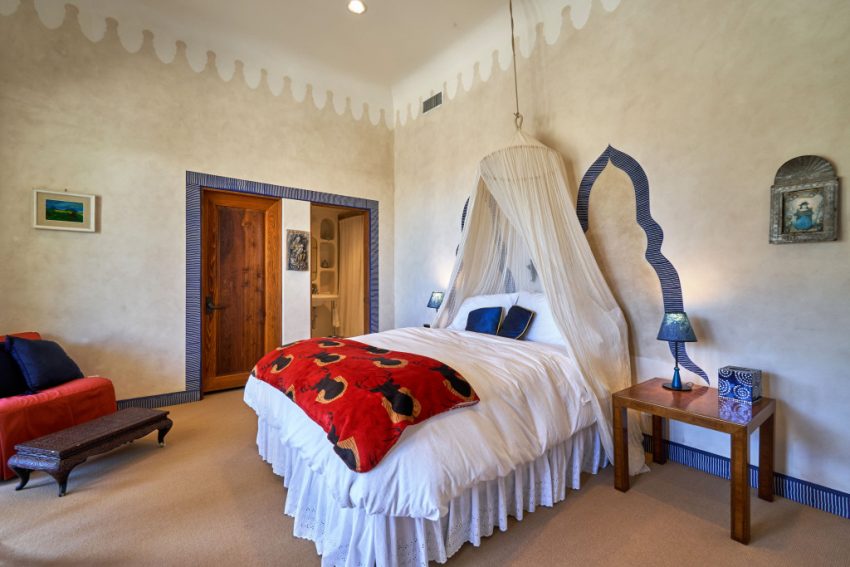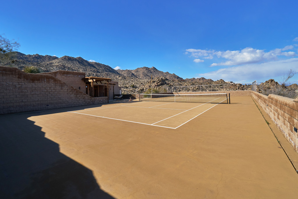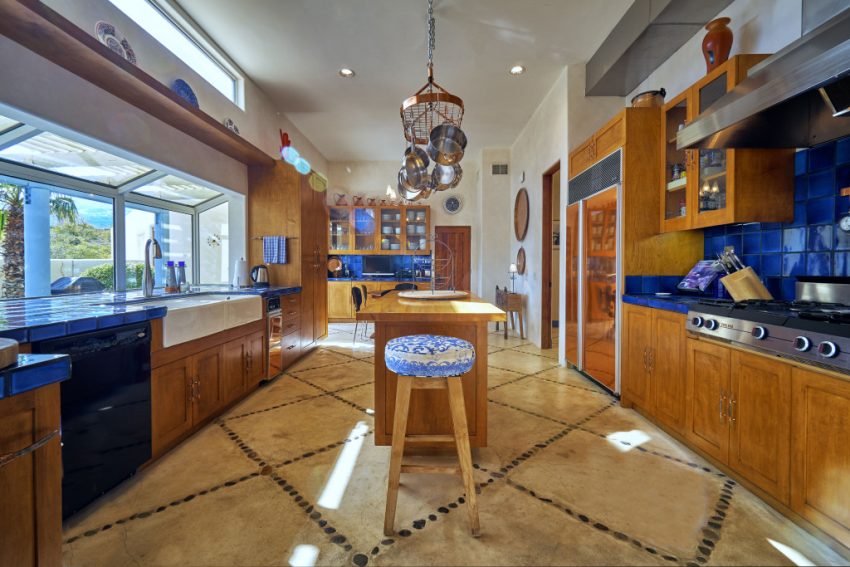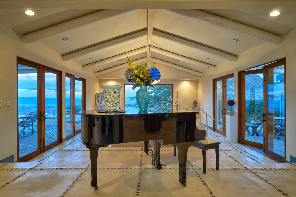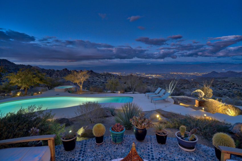 Dentro da casa principal de dois andares, que possui vistas panorâmicas sobre o Vale Coachella e o Canyon, existe um bar, um estúdio de arte e um cinema.