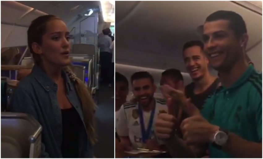 Festa brava do Real Madrid no avião que transportou a equipa de volta a casa, após ter conquistado o Mundial de Clubes nos Emirados Árabes Unidos.