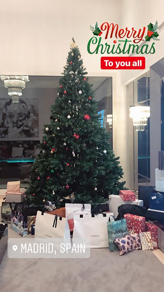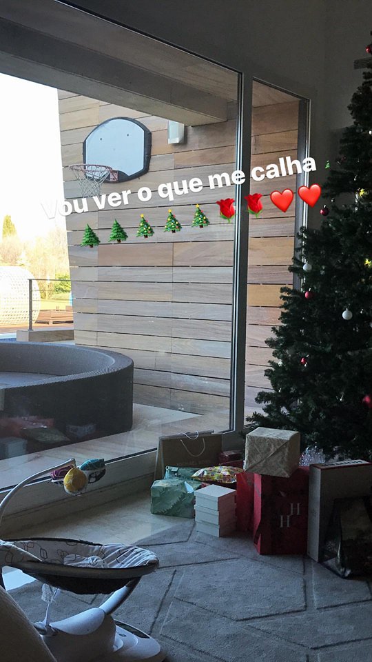 ‘Geo’ tem Alana Martina ao colo, Dolores ficou com Mateo e Kátia segura em Eva. A modelo espanhola teve ainda duas familiares na noite da Consoada, passada na mansão do jogador em Pozuelo de Alarcón, Madrid.