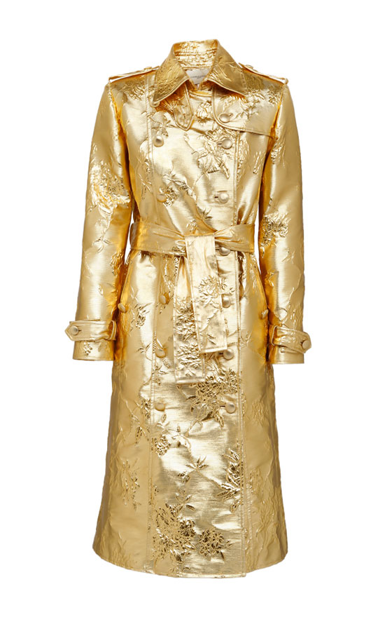 “De acordo com o mito de Ovídio, Zeus enamorado transformou-se numa chuva de ouro para alcançar Danae. A gabardine dourada da Primavera/Verão 2017 narra o mito de Ovídio retorcido num look total dos anos 80”, explicou a marca.