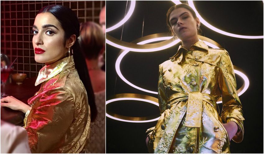 A gabardine da marca italiana custa 501 euros e tanto pode ser usada como casaco como vestido, dando um look total metálico muito surpreendente já que também tem as suas texturas. E há uma explicação para este design.