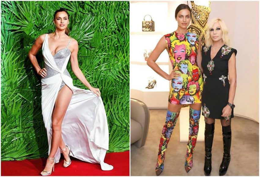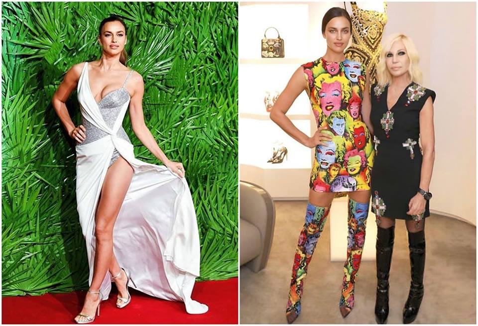 Em cima de uma mesa giratória, Irina provoca os seguidores. Enquanto come, deixa grande parte do corpo à mostra, muito à custa do arrojo da criação Versace que escolheu para desfilar na passadeira vermelha do Royal Albert Hall.