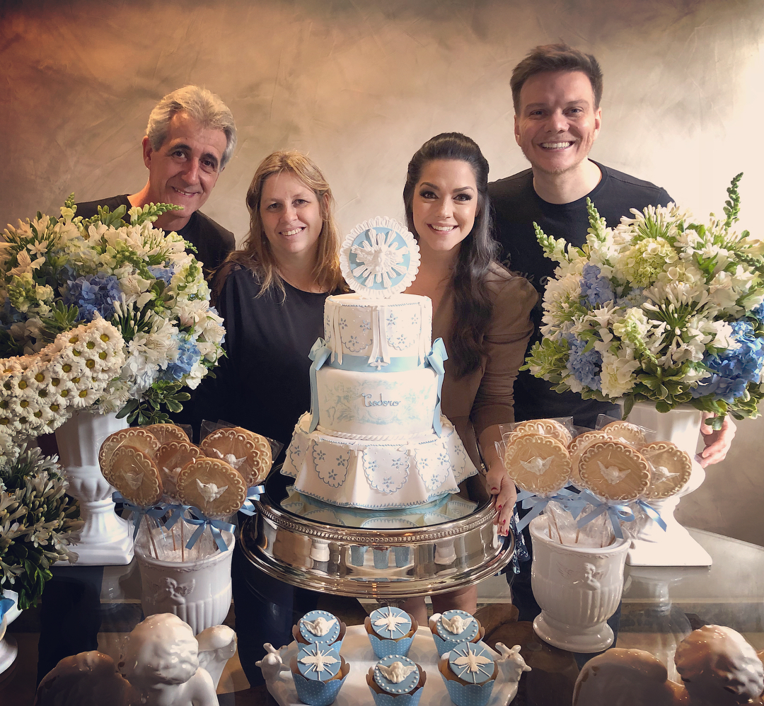 O casal partilhou este momento especial com os seus seguidores, nas redes sociais. “Meu coração de pai, com o mais puro amor por vc, filhote, deseja que o seu coração seja cheio de Deus, do Espírito Santo, de Jesus. Quando se tem isso, todo o resto Ele acrescenta!‘… quando o Espírito Santo controla nossa vida, produz os seguintes frutos: amor, alegria, paz, paciência, gentileza, bondade, delicadeza e auto-controle’. Batizado do Teodoro! Amor infinito!”, escreveu o artista, na legenda de duas fotos de família.