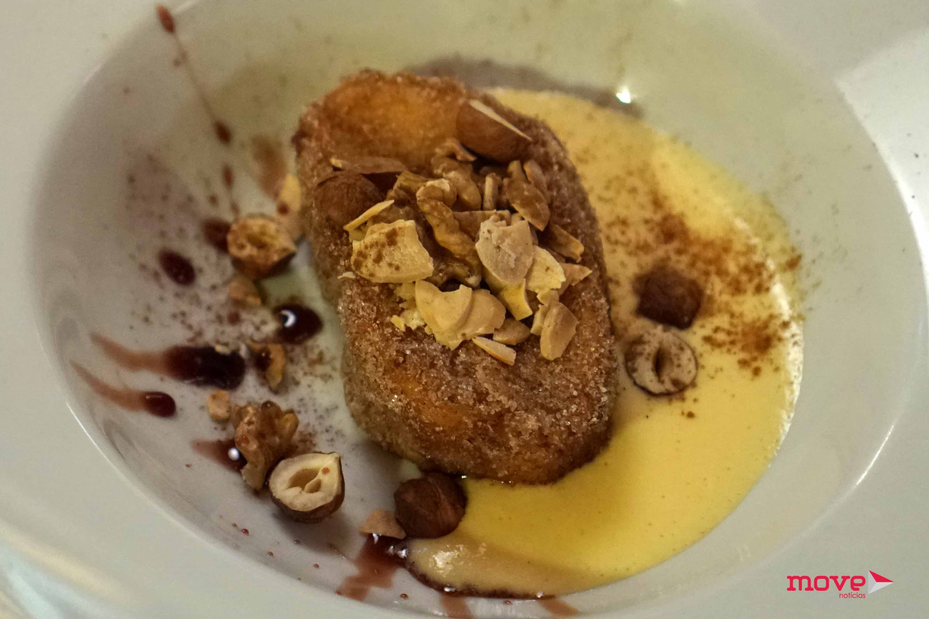 Num prato, de preferência fundo, colocar um pouco de creme inglês já frio e posicionar a rabanada por cima.